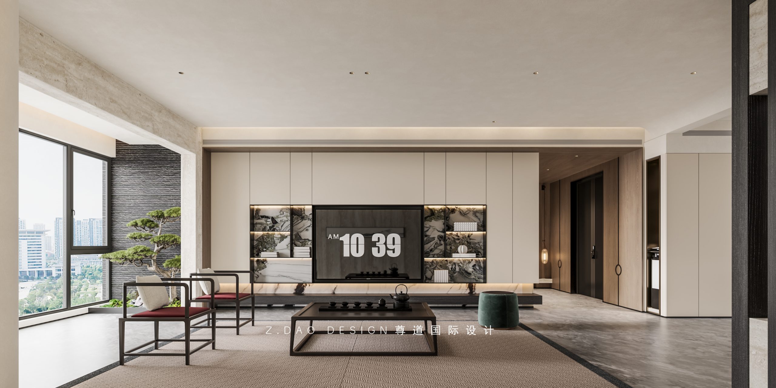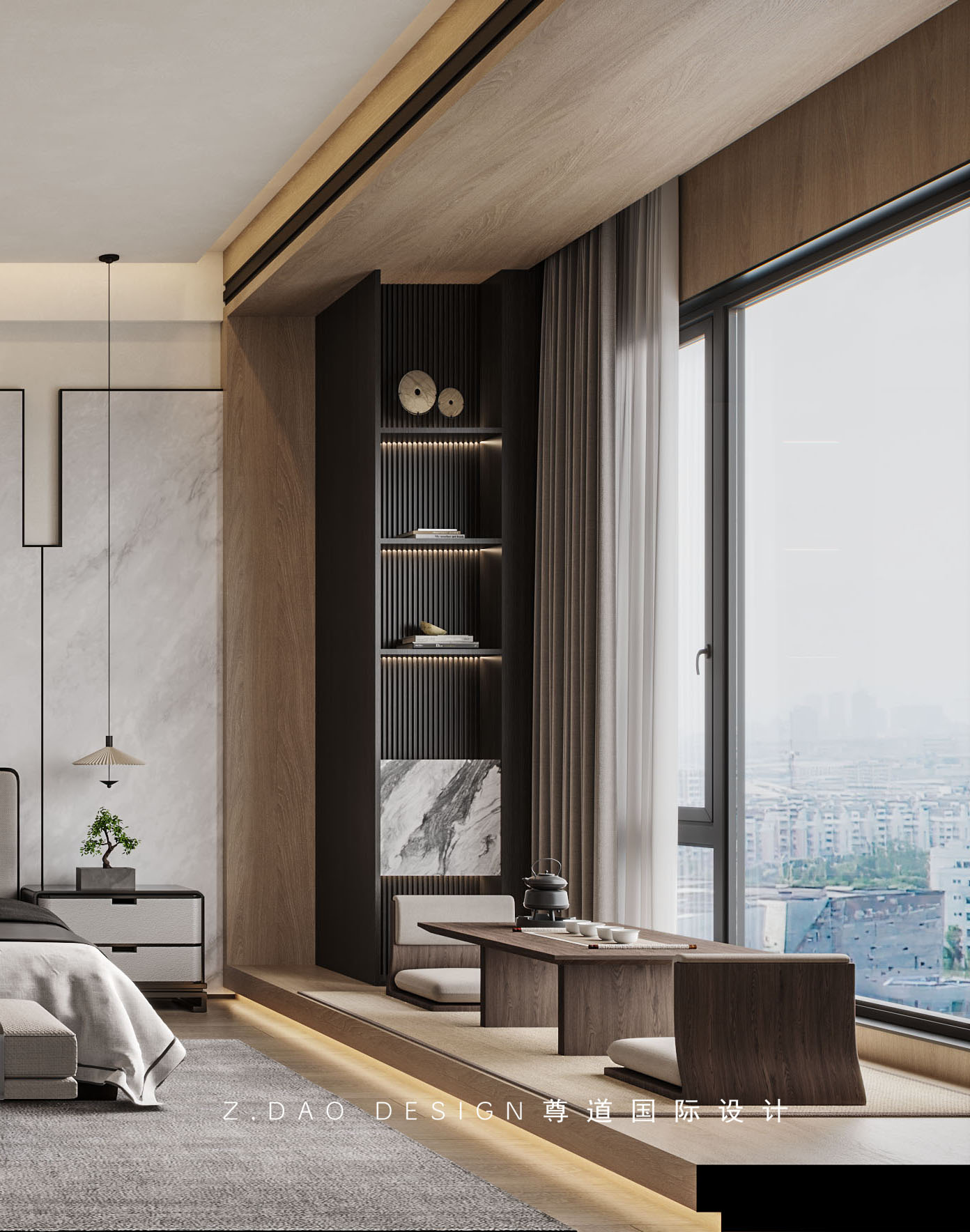 窗台四周用木饰面包裹,放上茶台让空间展现恰到好处的舒适。