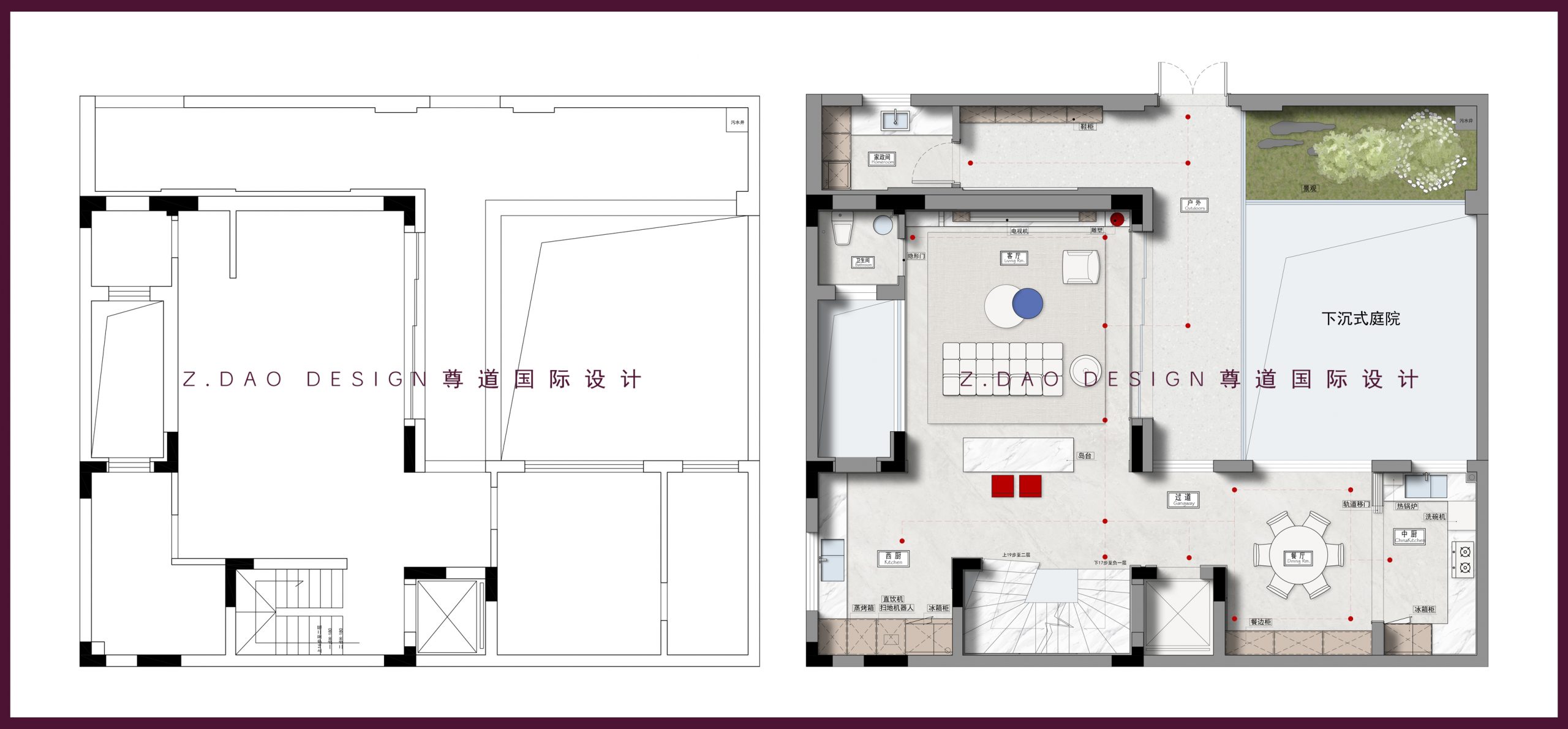 3、采光井区域现浇出地台,可以很好的和负二楼互动。