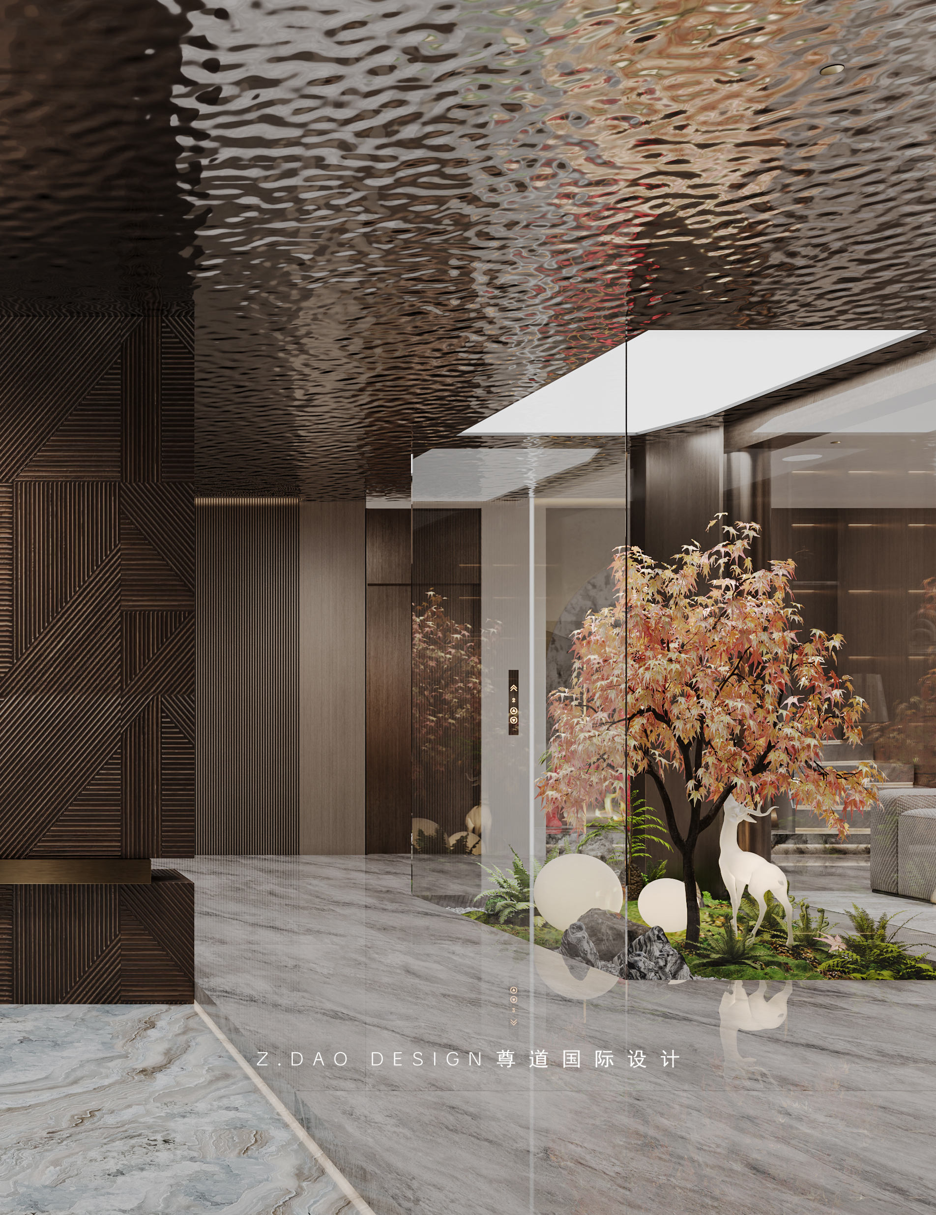 右边的室内微景观能够提高人的审美情趣,且净化室内空气,节能环保,“一步一景”带来别具一格的艺术意境。