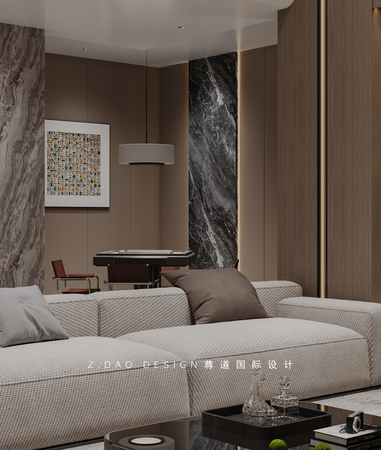 在休闲区的设计上以简洁为中心,但却不单调,空间采用了多种灯带,柔和的光线让灰与咖色形成空间视觉上的巧妙过度。