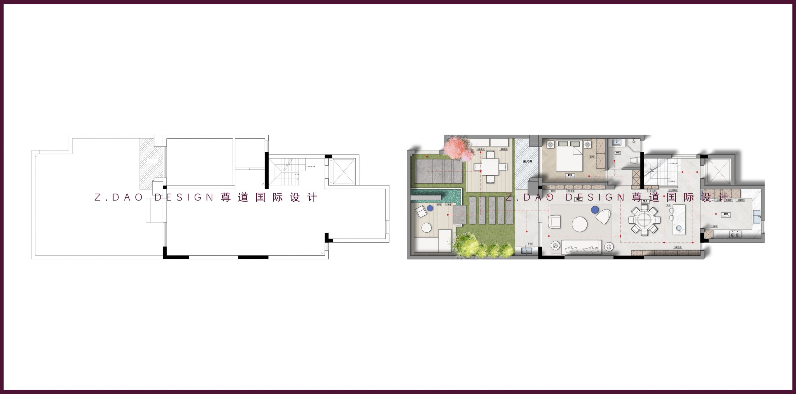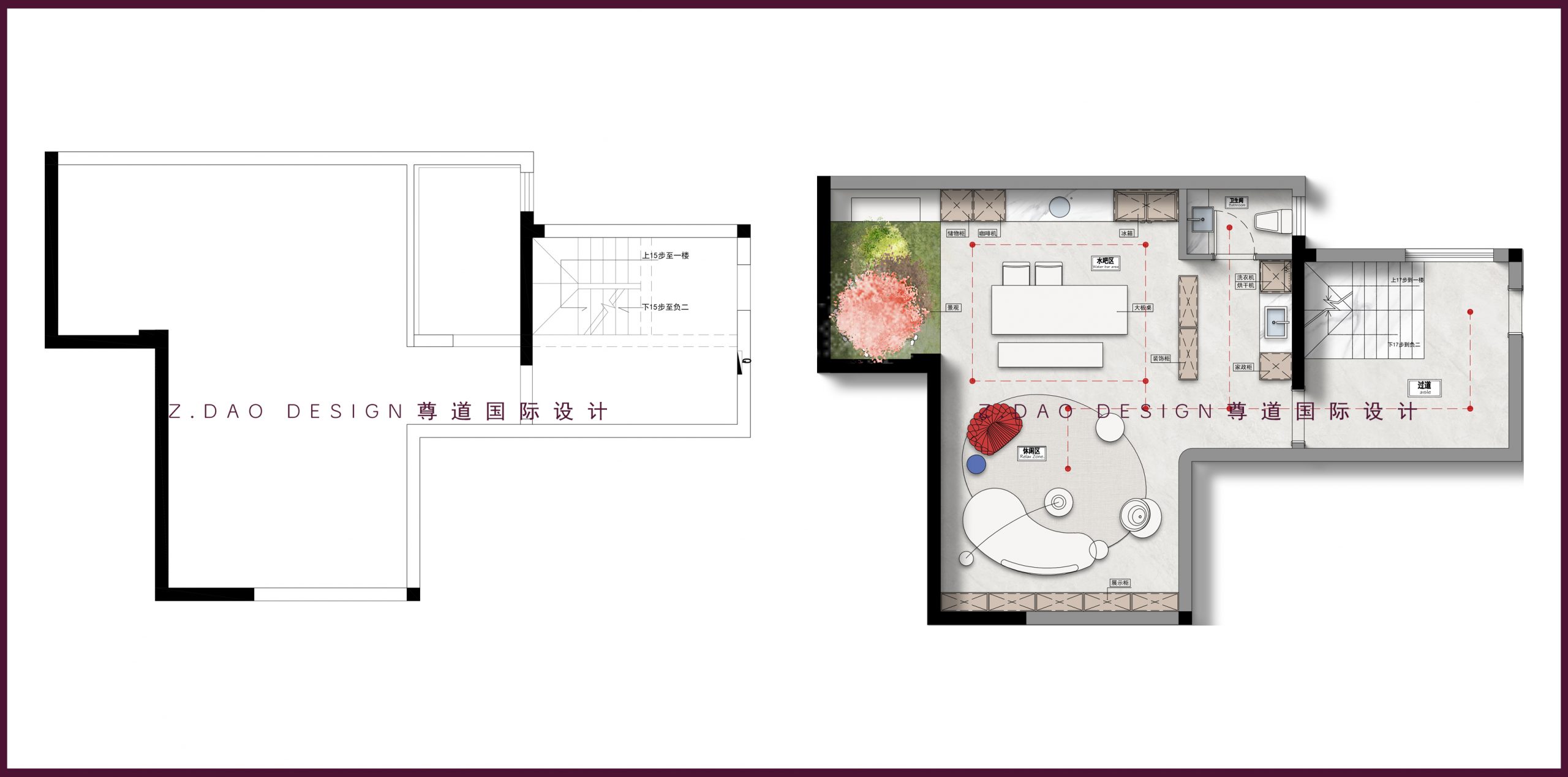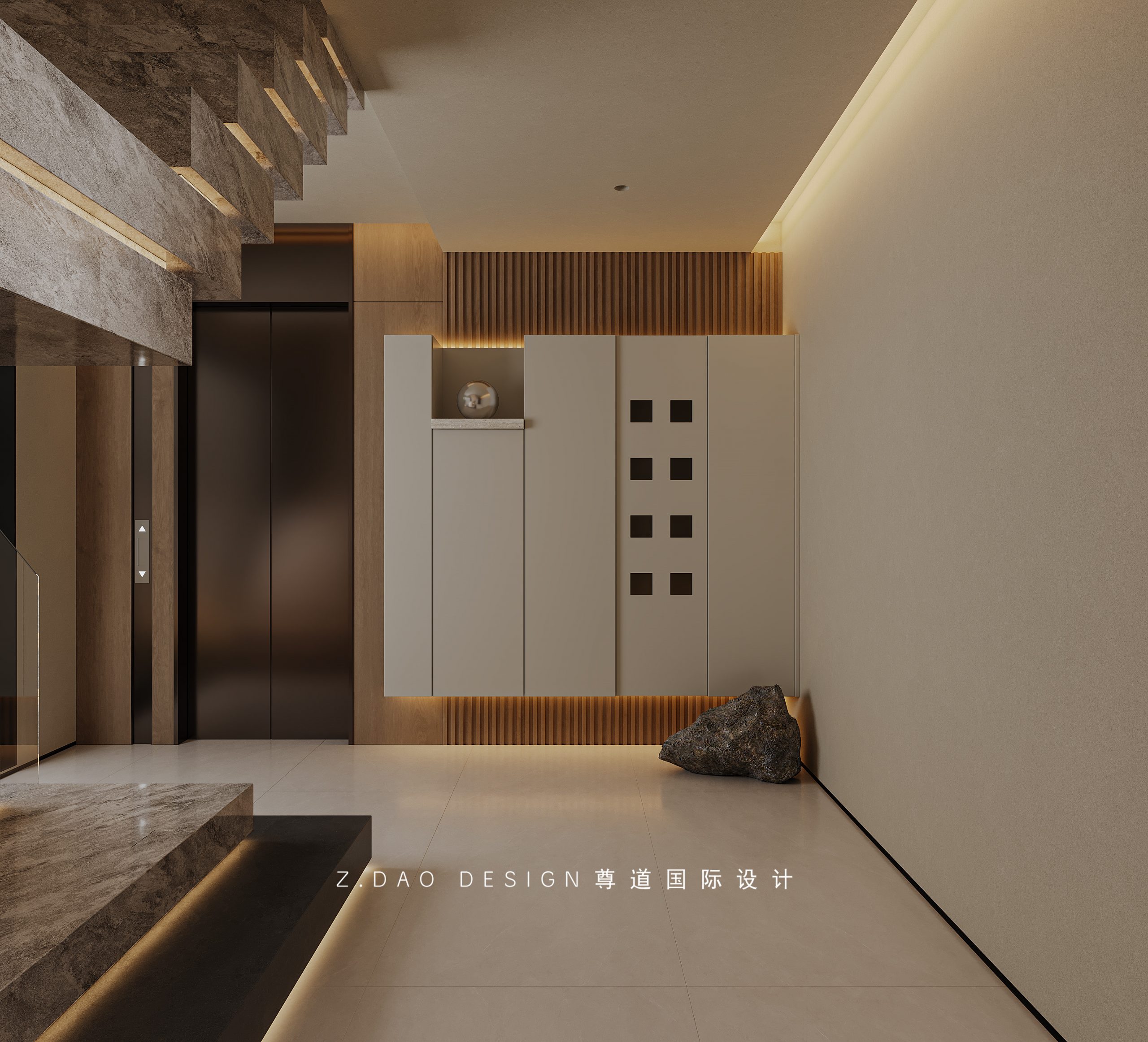 2、整个负二都作为储物功能空间使用,造型相对较少,叠浮楼梯与景观小品的结合,为这一空间增加了亮点。