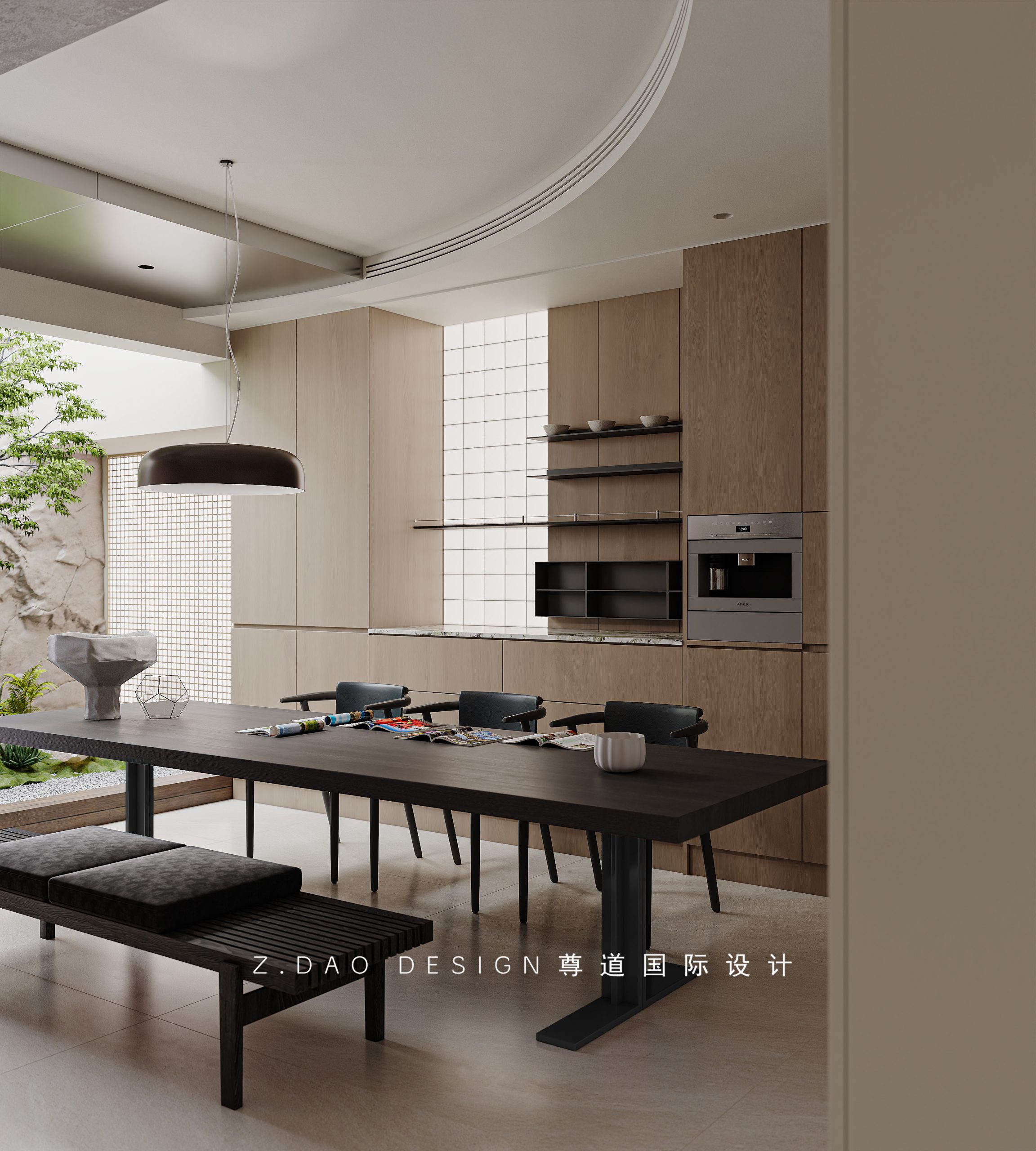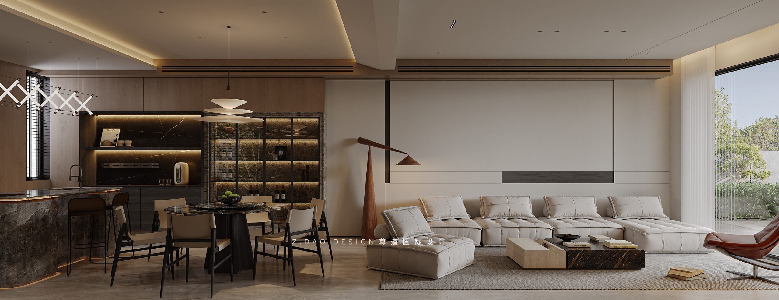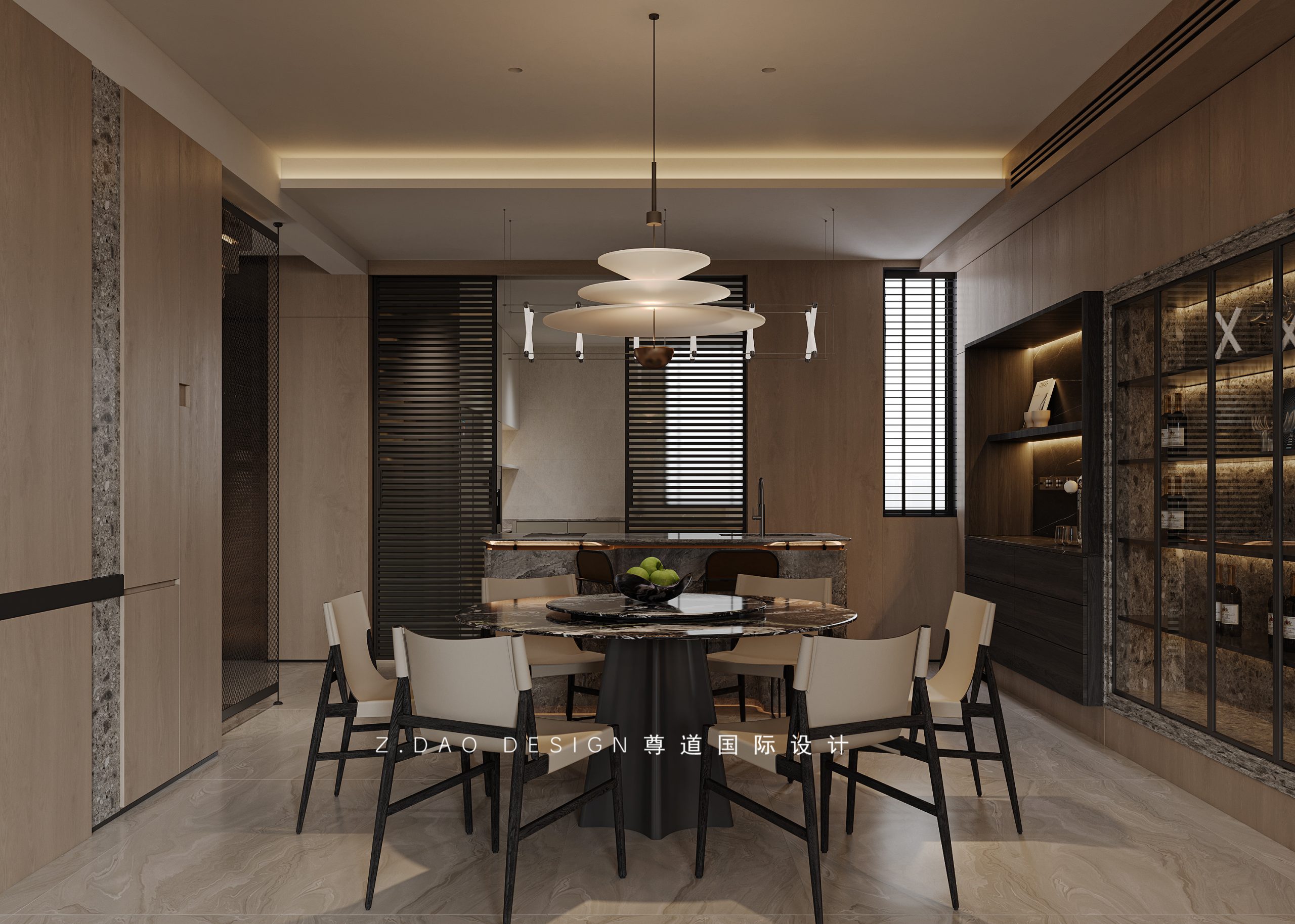 空间以暖色格调为基础,融入原木、格栅、烤漆面板等元素,将材质与色调完美融合,于细节中延展高级与情调。