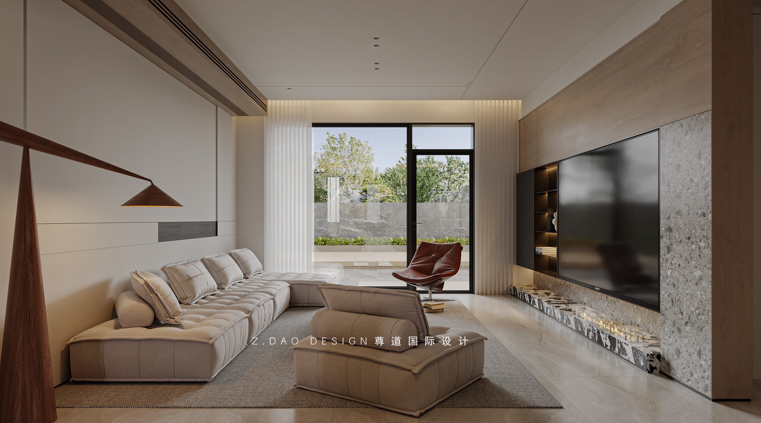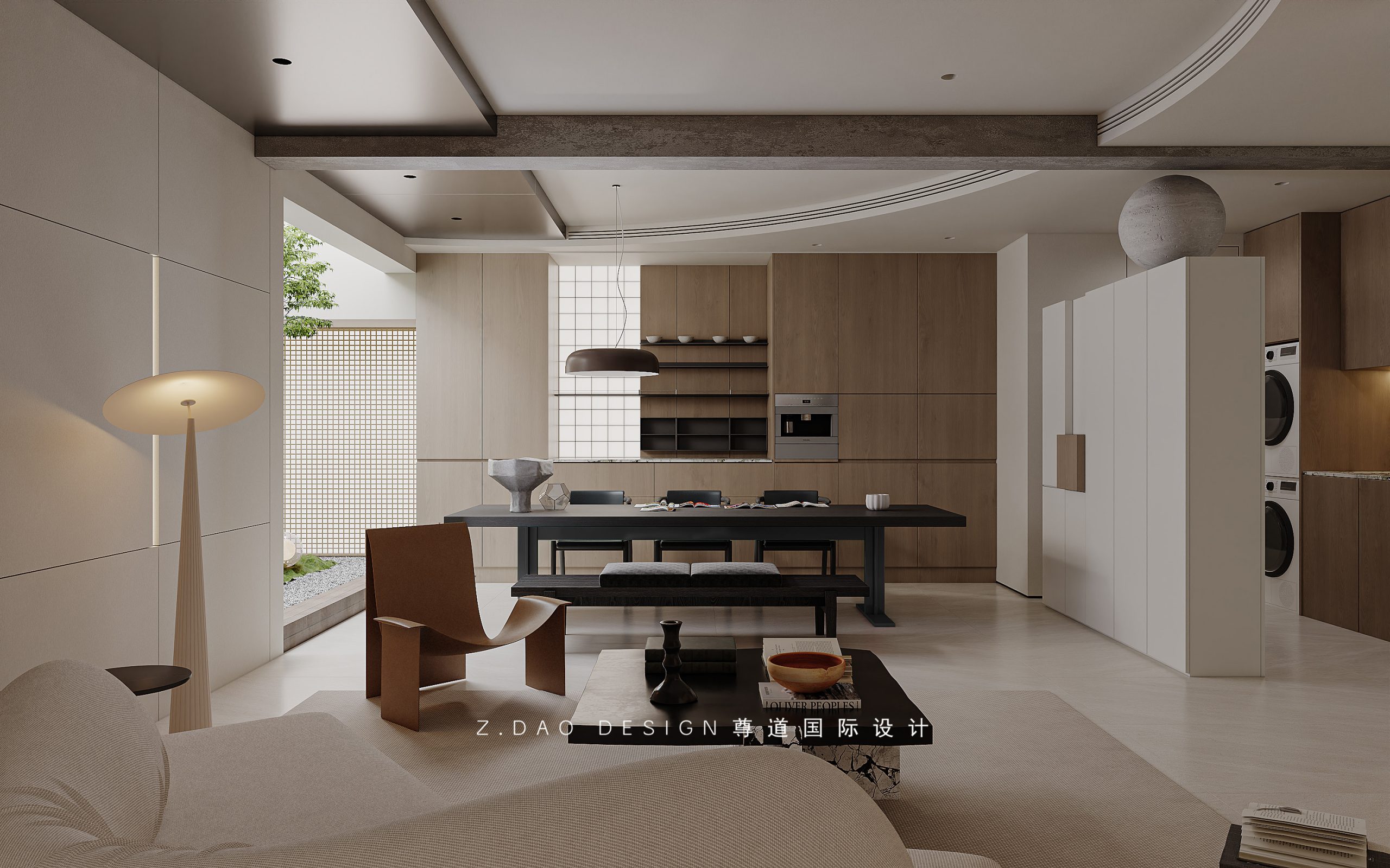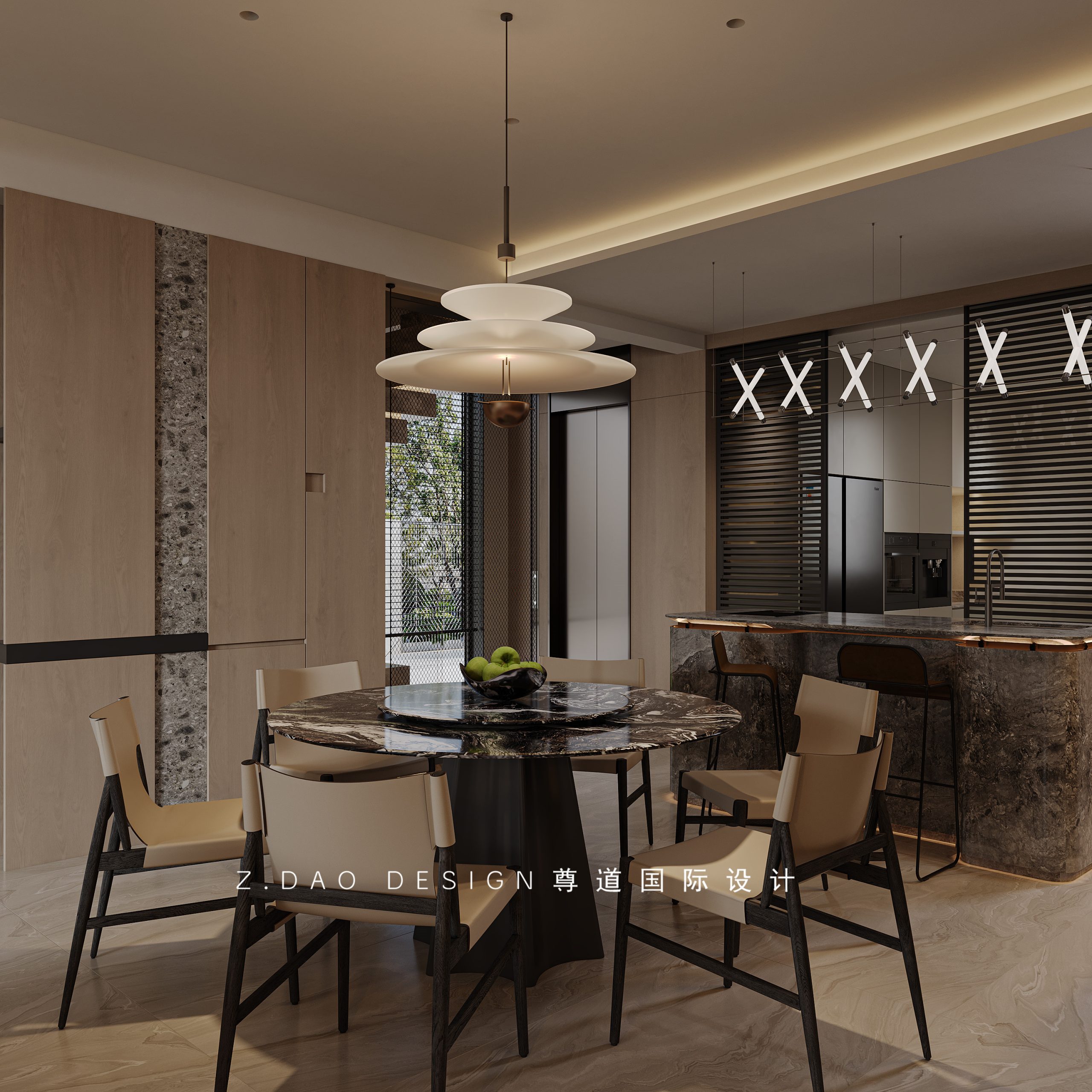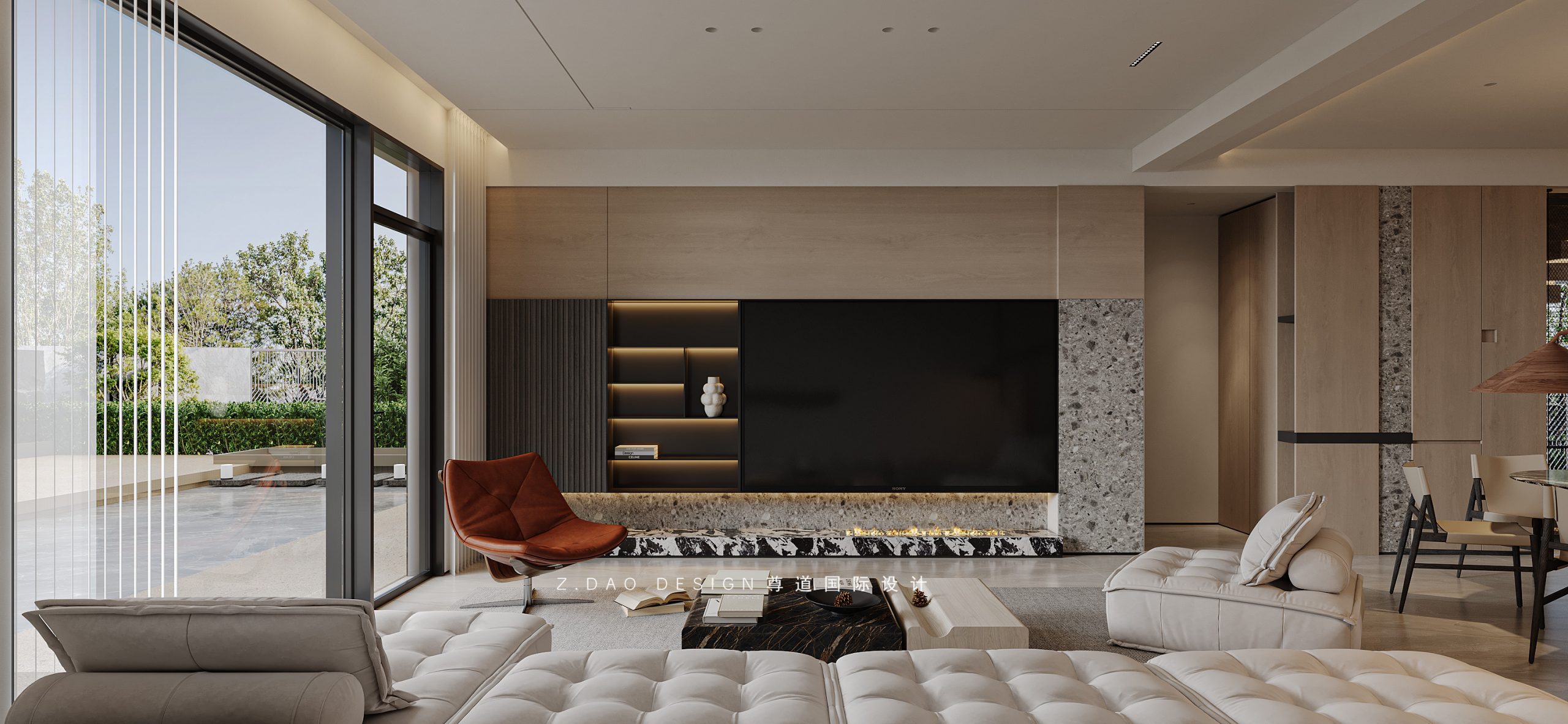 空间以暖色格调为基础,融入原木、格栅、烤漆面板等元素,将材质与色调完美融合,于细节中延展高级与情调。