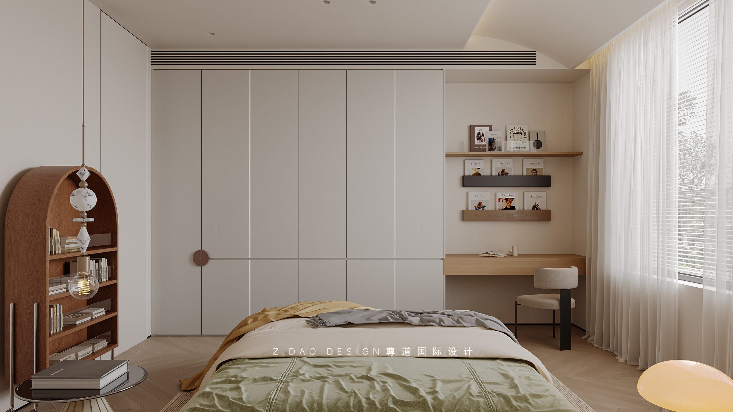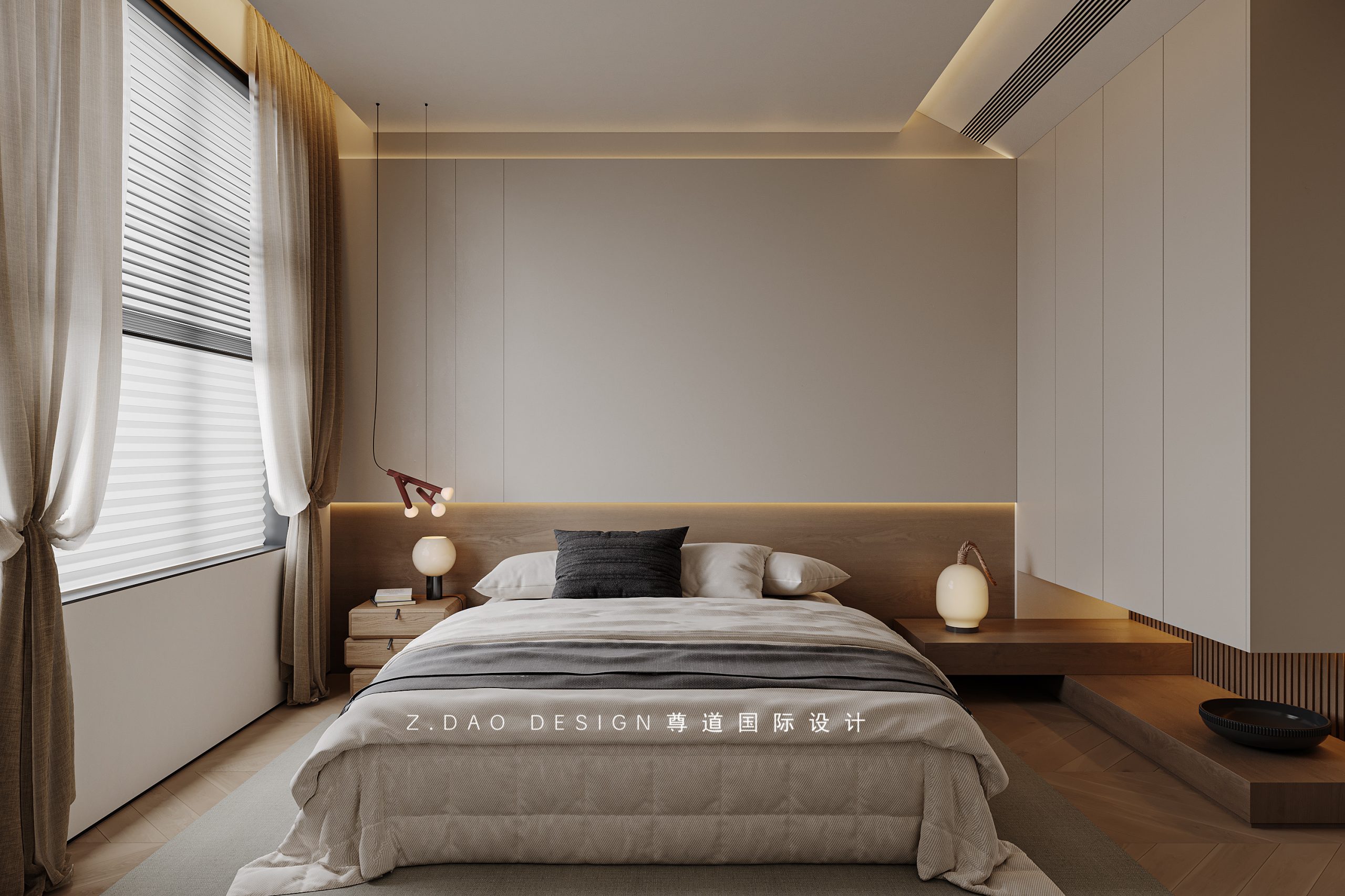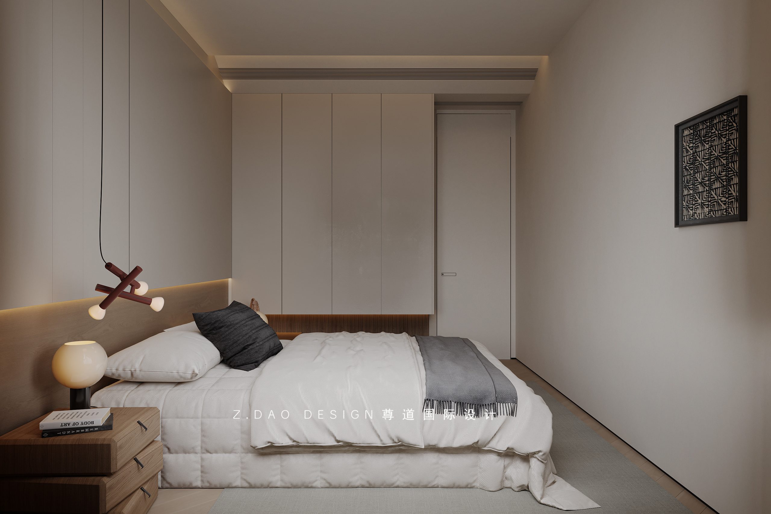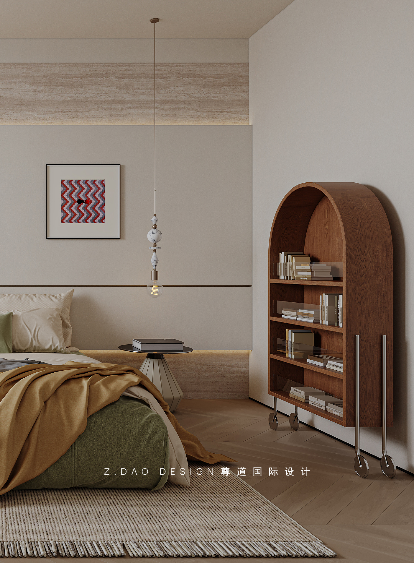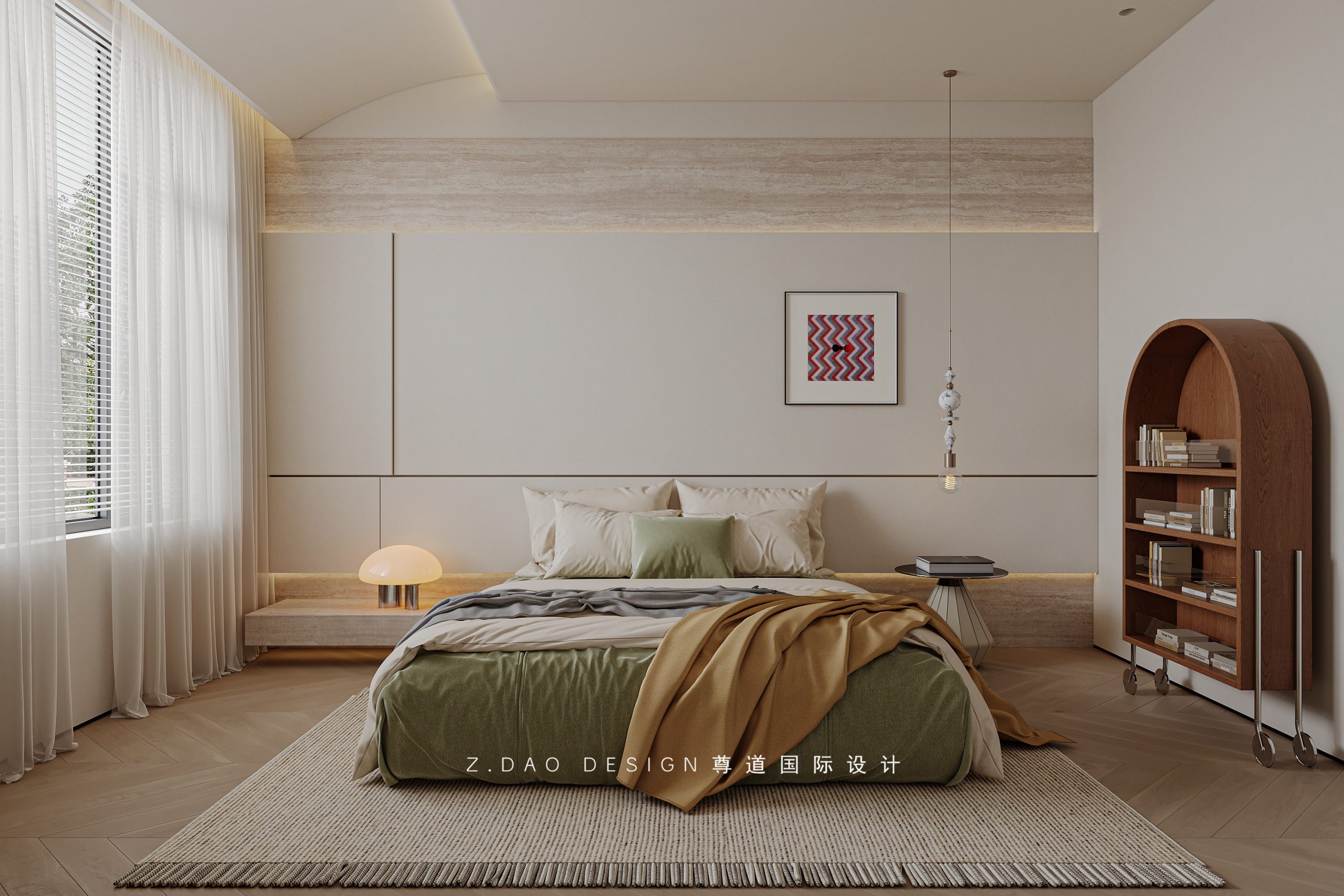 低饱和度的整体色调,一定程度上起到柔化空间的作用,营造出温馨静谧的卧室氛围。还原卧室的基本功能,把睡眠变成一件极为单纯的事情。