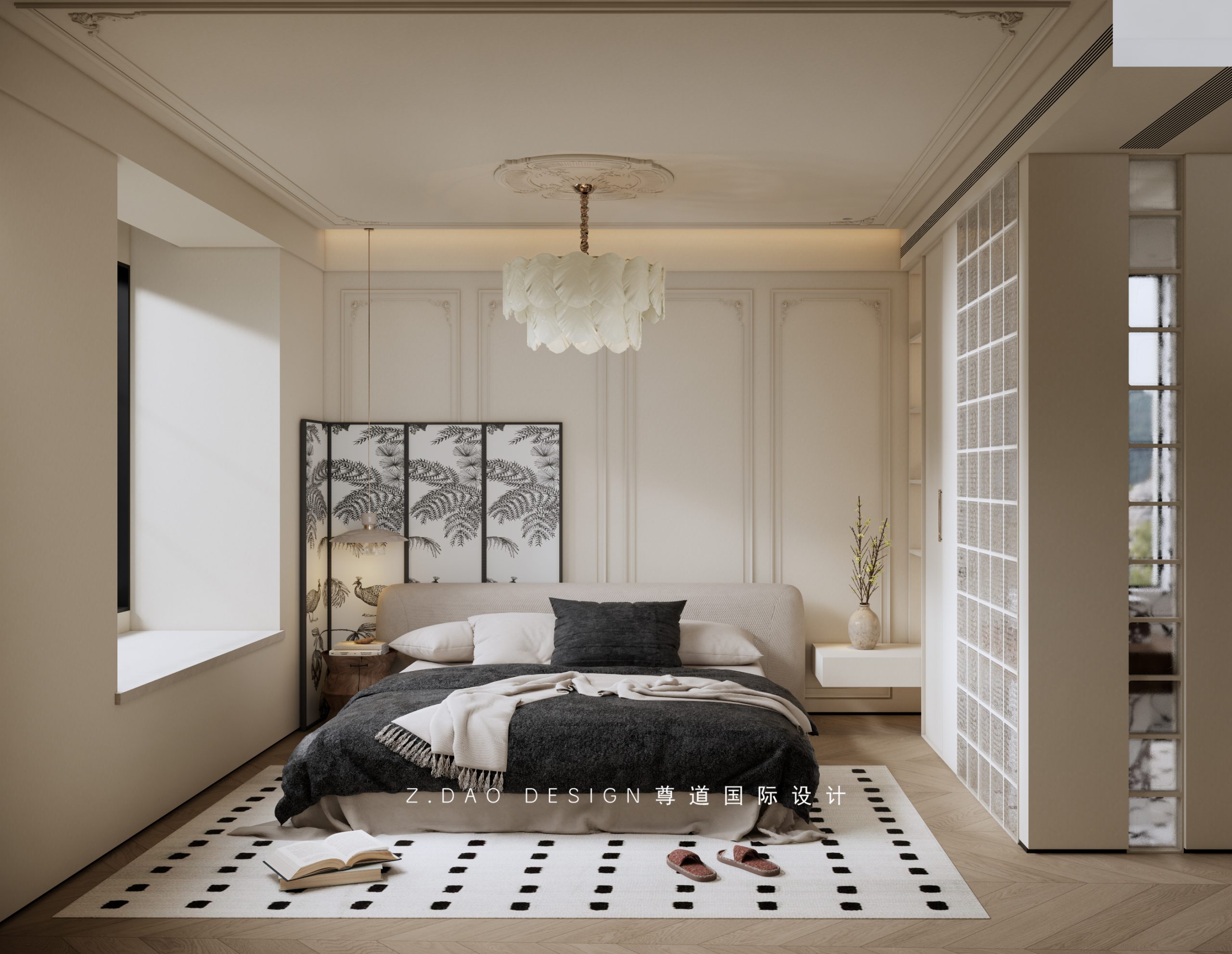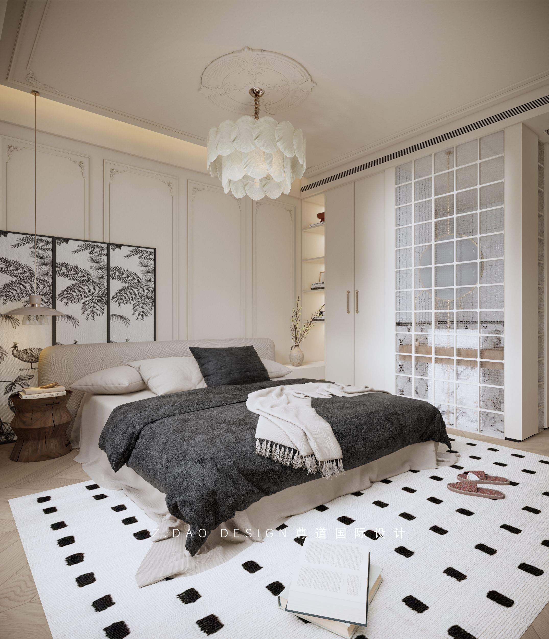 夹层靠近天井采光最好的空间做了女儿房,设计师很注重自然光线,利用自然光和人工照明,把光源利用到极致,在这里,艺术与功能并不矛盾,舒适温馨、大气简约,诠释着业主对美的品味追求。