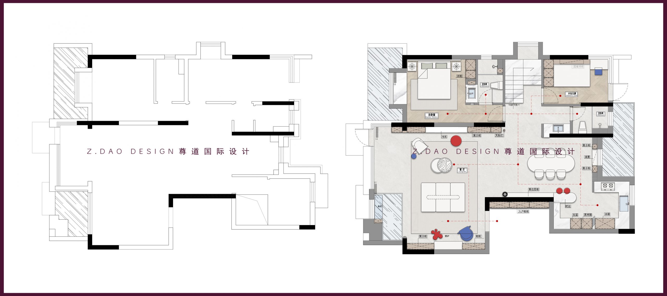 ▲一层原始户型图vs平面布局图