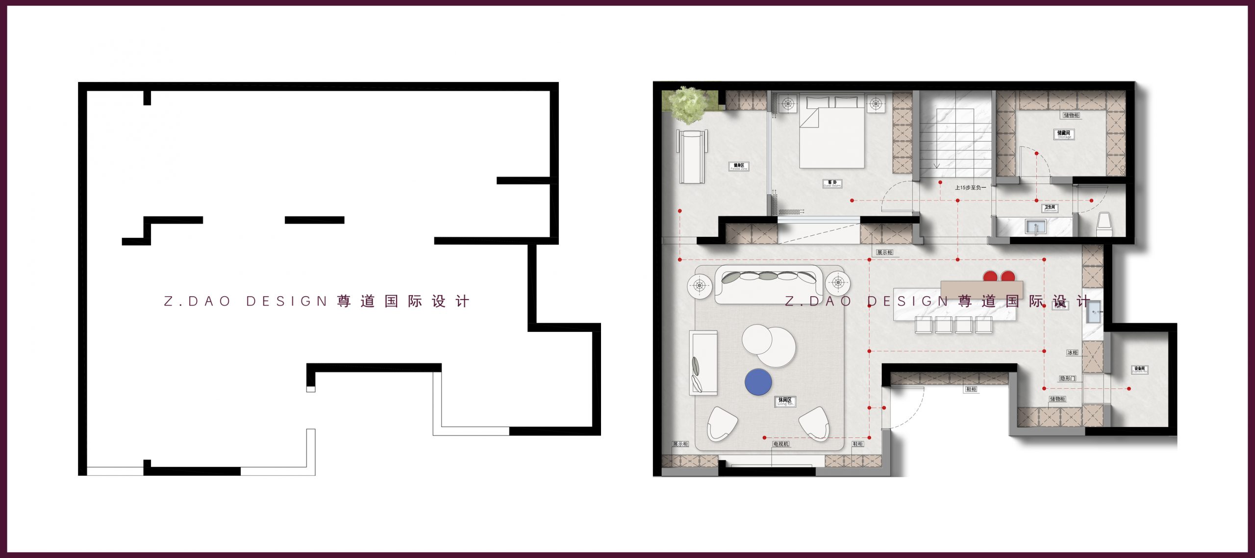 ▲负一层原始户型图vs平面布局图