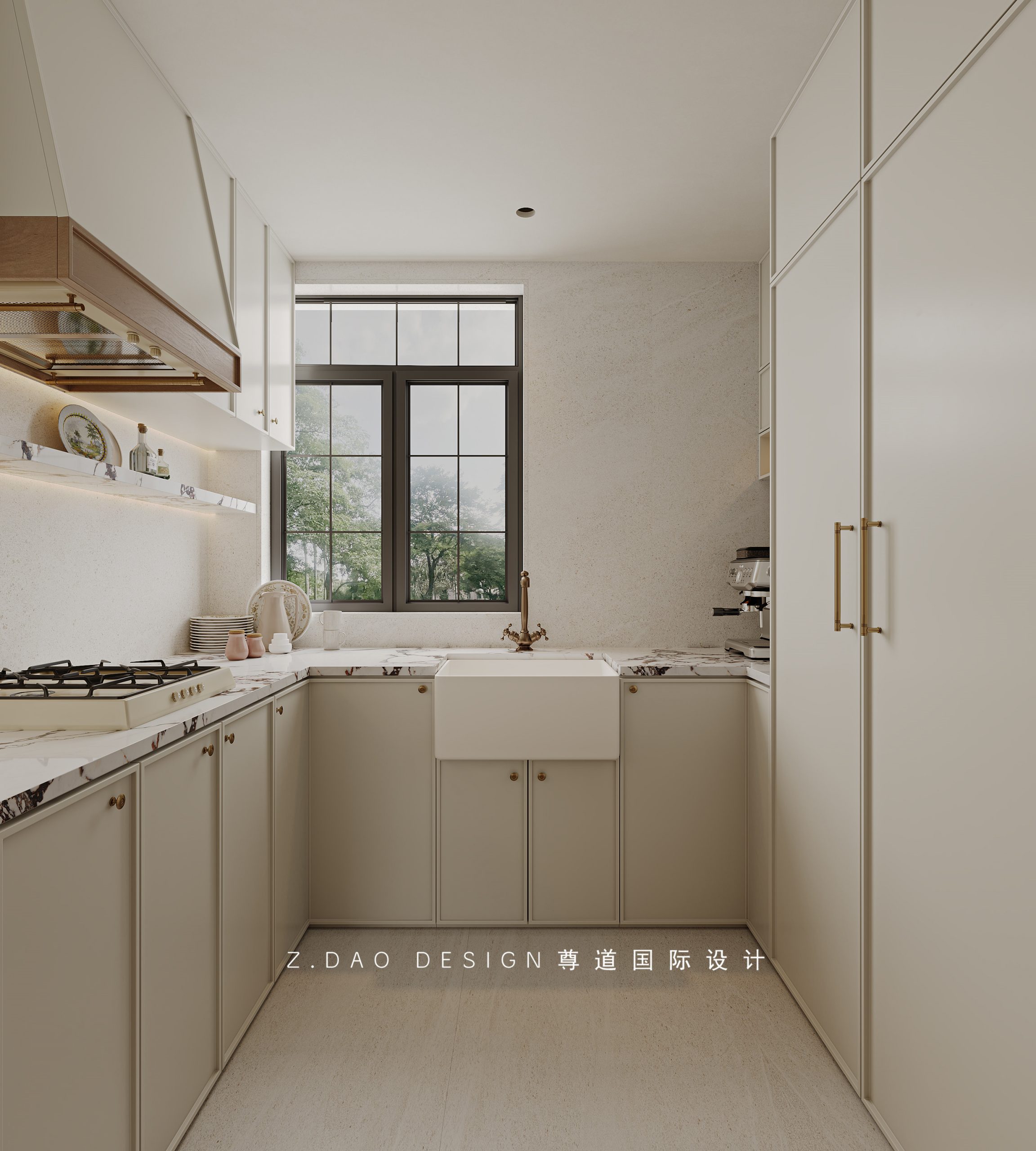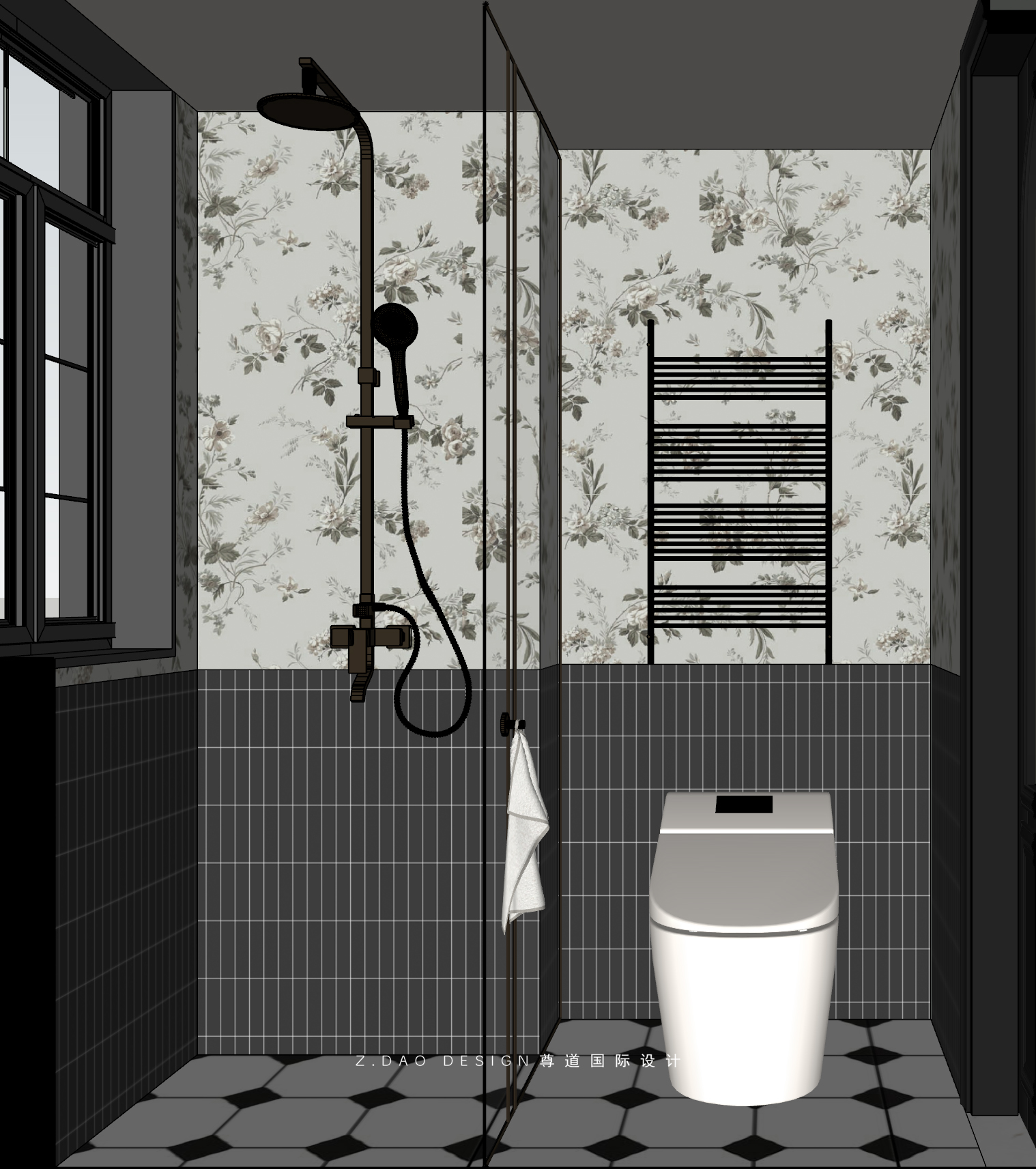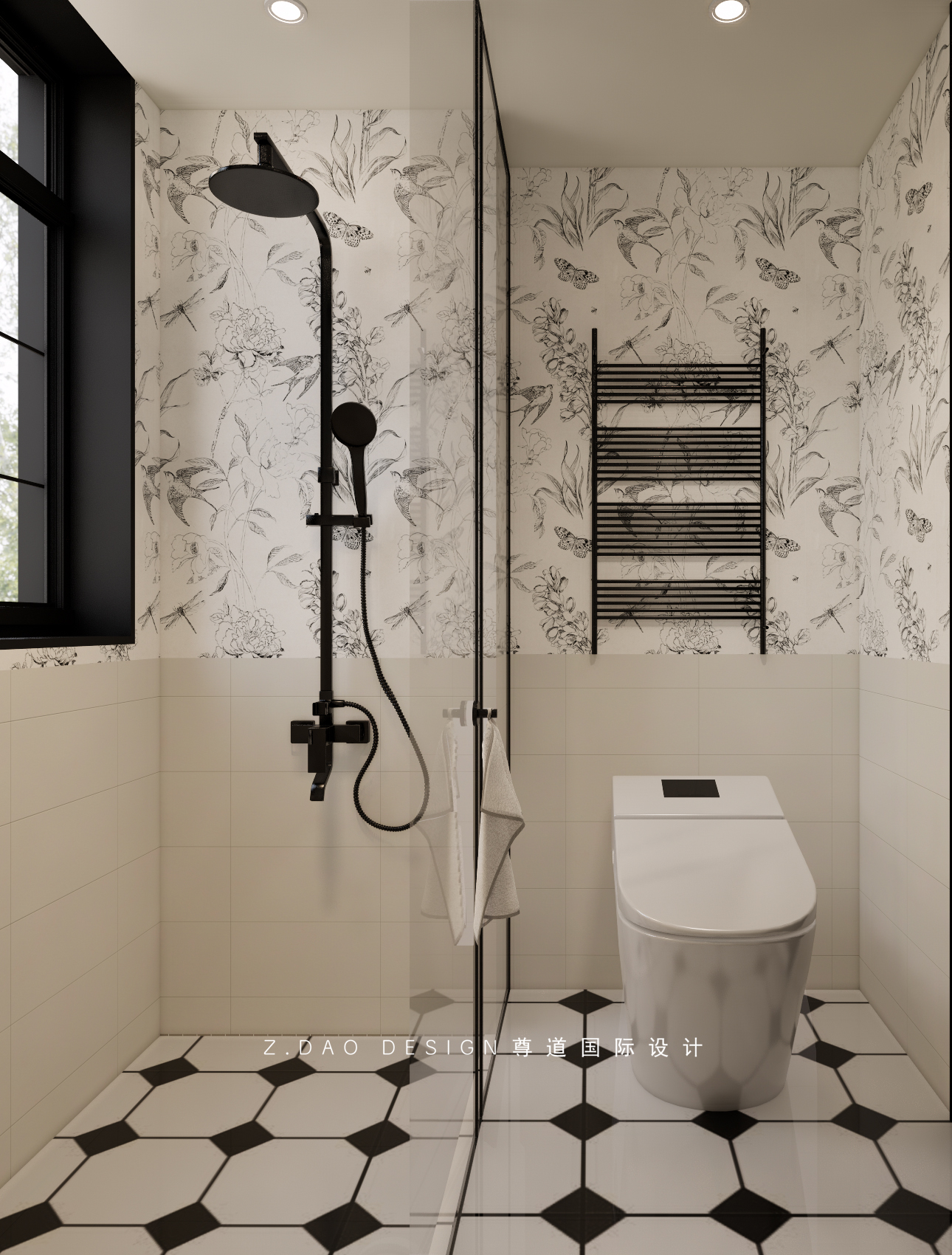 卫生间湿区以温柔的奶白色调为主,墙面燕子花砖的点缀,自带的精致感地面的黑白小花砖,温润的质感完美融入卫生间复古氛围里。