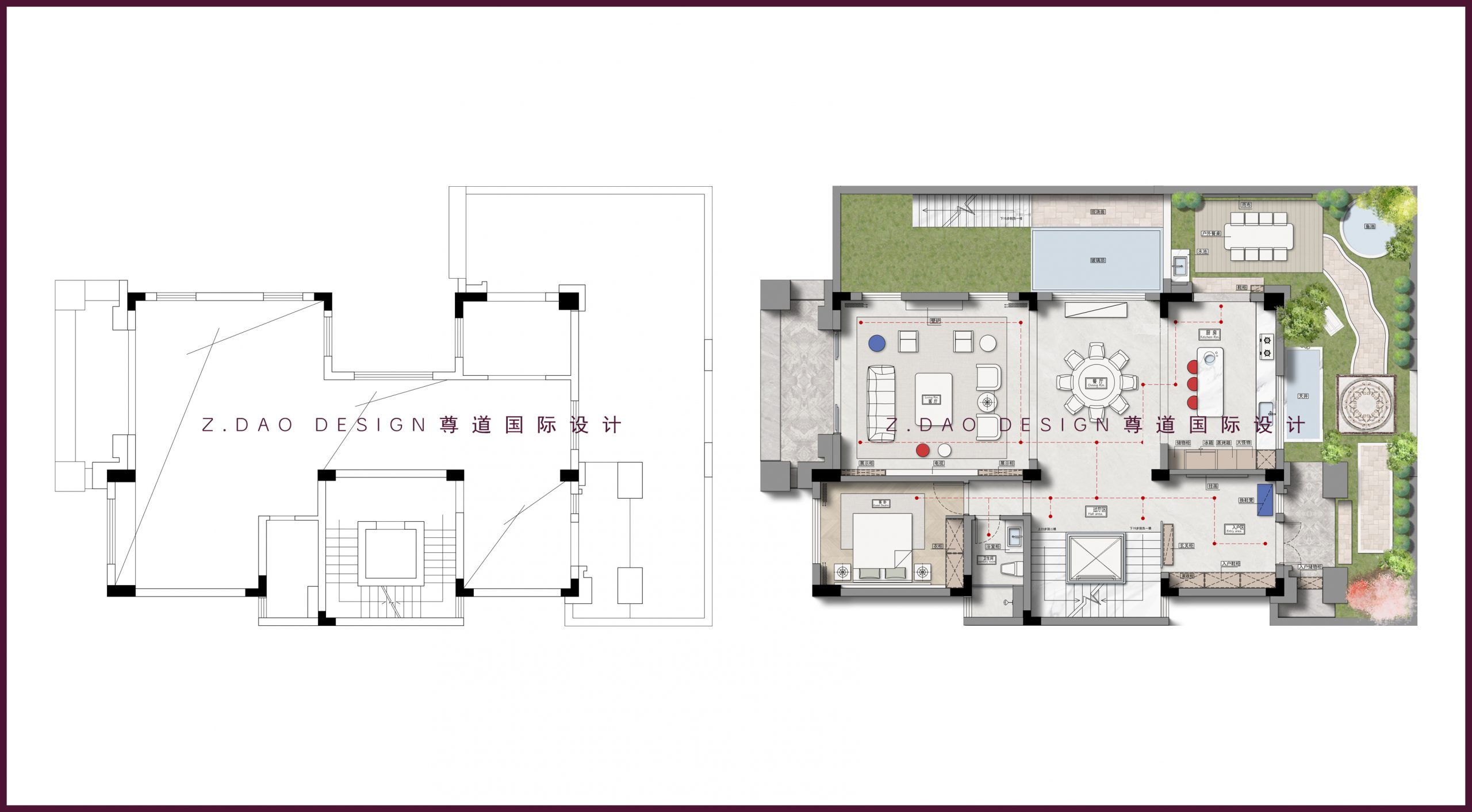 ▲一层原始户型图vs平面布局图