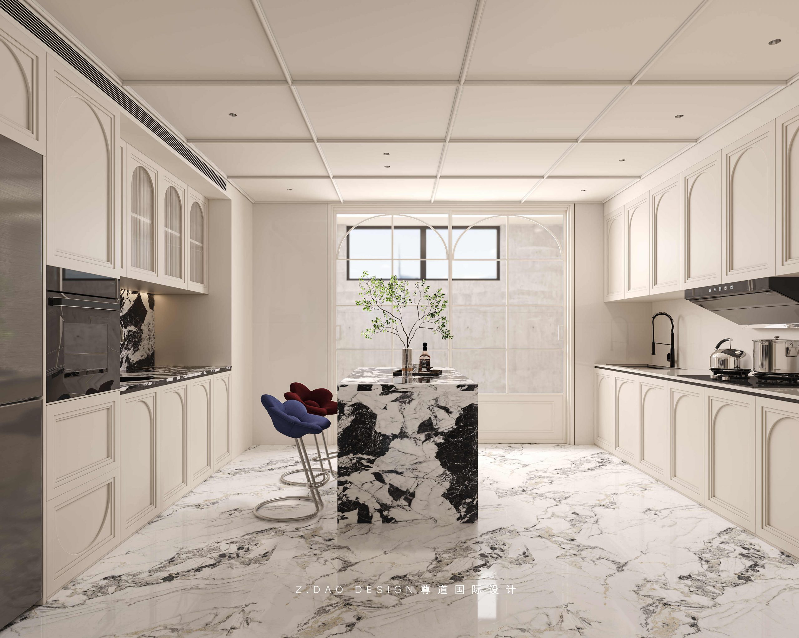 中西厨一体的厨房,加餐岛一体,功能与幸福感同时到位,这不就是我们喜欢的精英风餐厨吗!