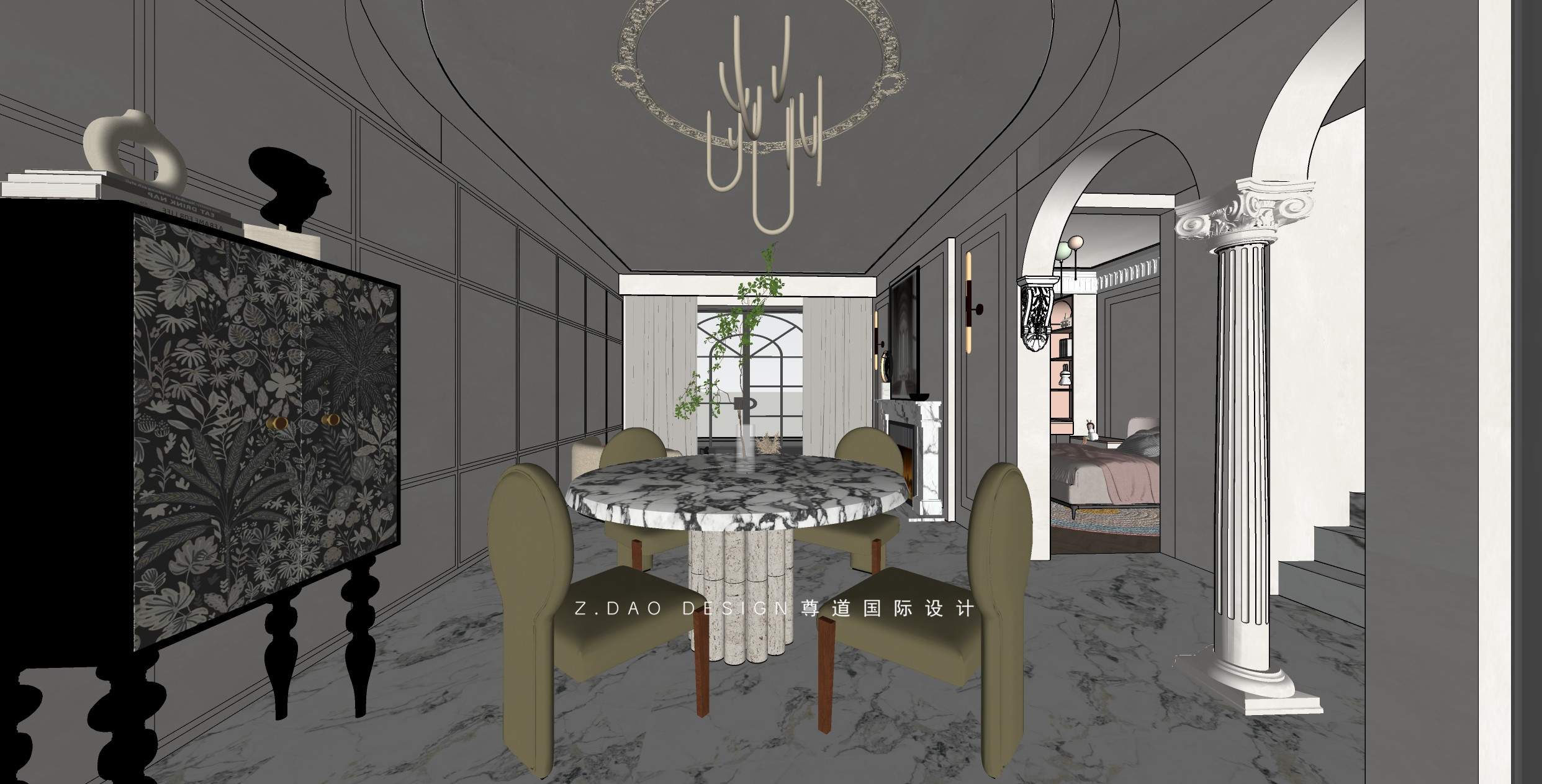 过厅的墙角都做了弧形的处理,法式的元素在这里慢慢呈现;