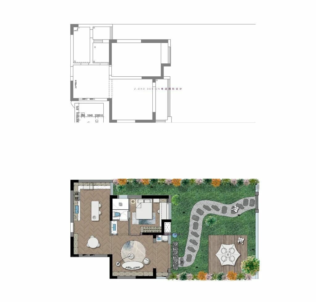 运用材料:艺术漆、瓷砖、木纹砖,透光隔断、烤漆门板,垭口,涂料极简门。