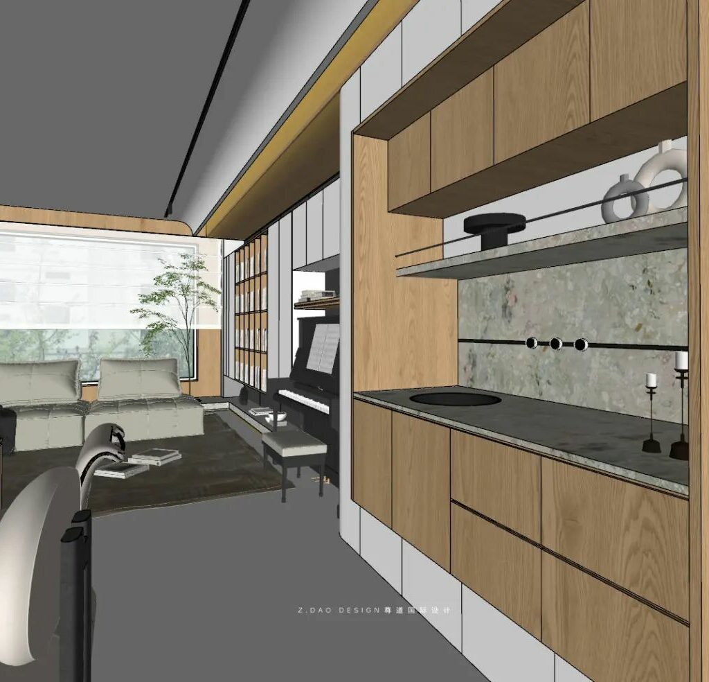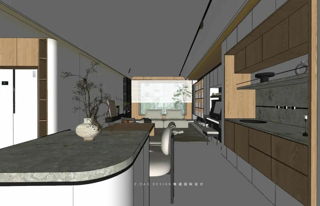 ❺厨房打开,做开放式,东边太阳光到达餐厅