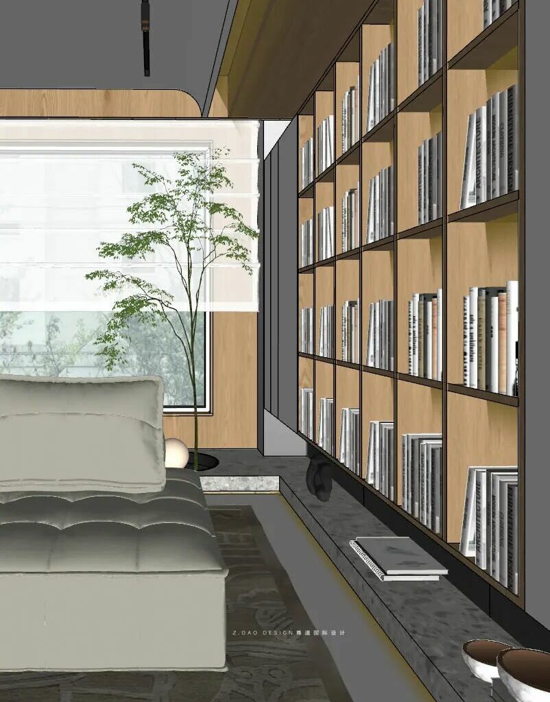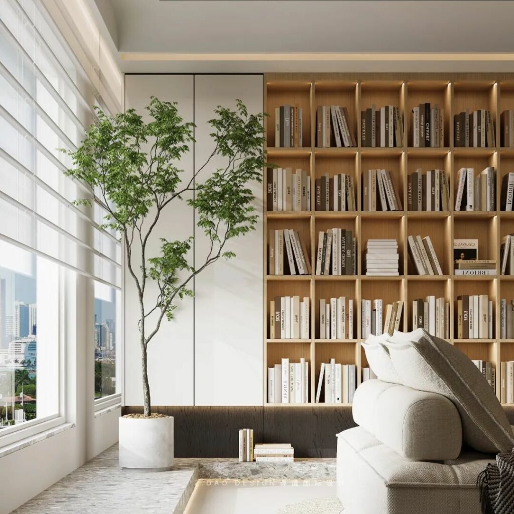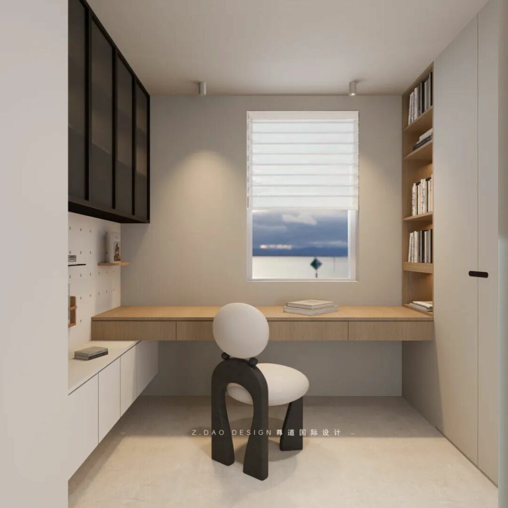 把客厅改造为开放式书房,打造大储物收纳书墙,营造一个书香气浓郁的家。既能满足孩子氛围的营造,也能增加与家人互动的机会。
