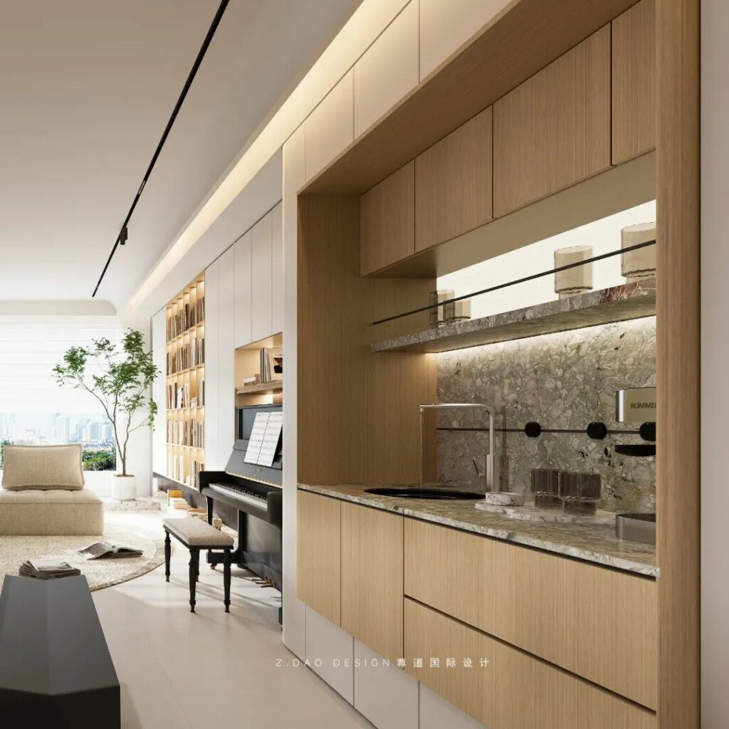自然材质与光影为媒介,将自然之美融入日常生活。空间不仅是功能载体,更是心灵与自然对话的容器,让居住者在喧嚣都市中寻得一片宁静栖息地。