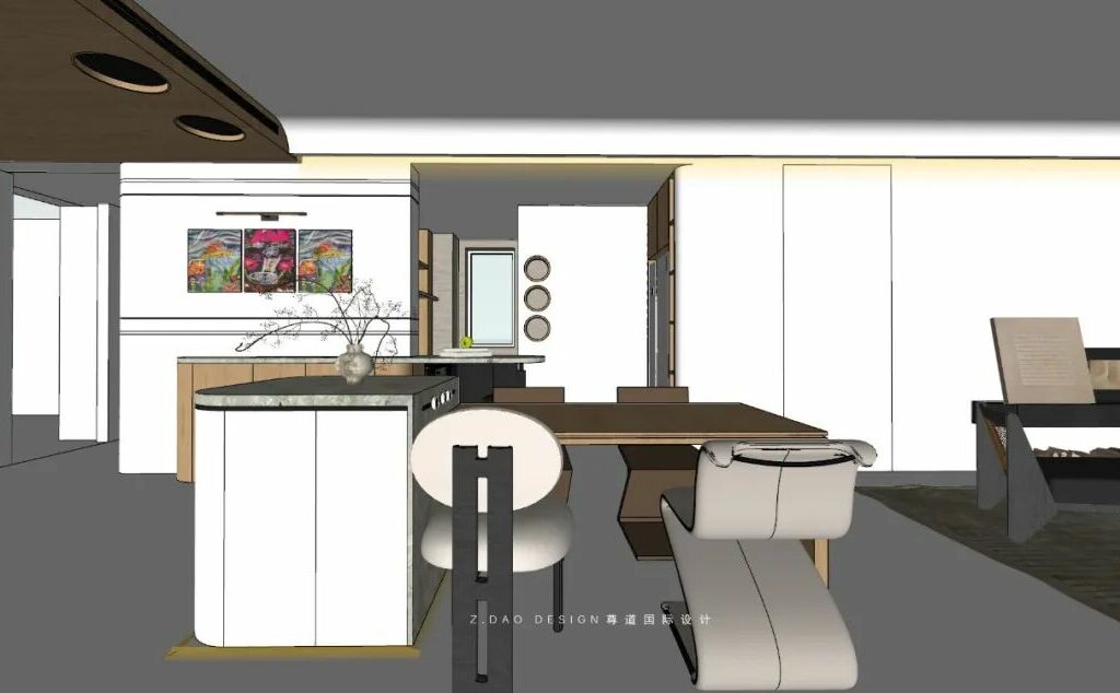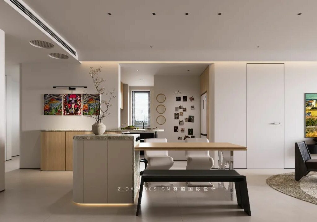 ❸客厅和餐厅一体化设计,岛台和餐桌的结合仪式感更强