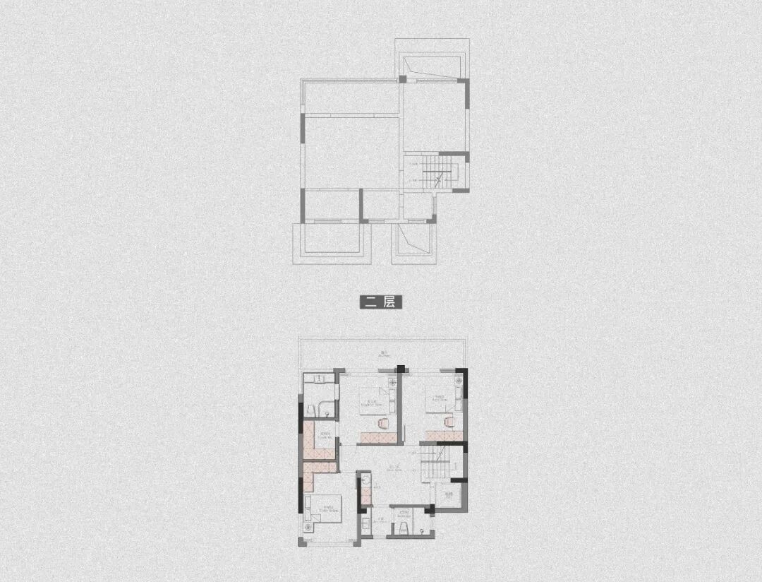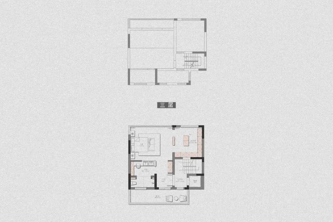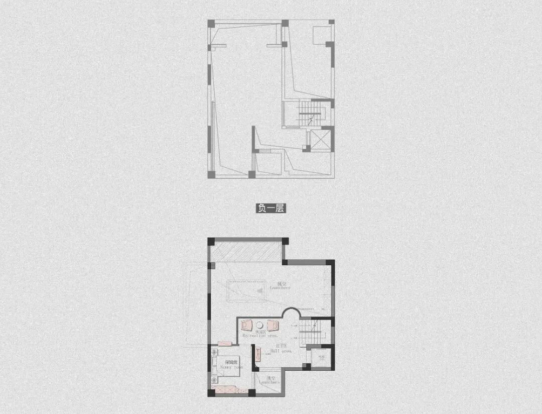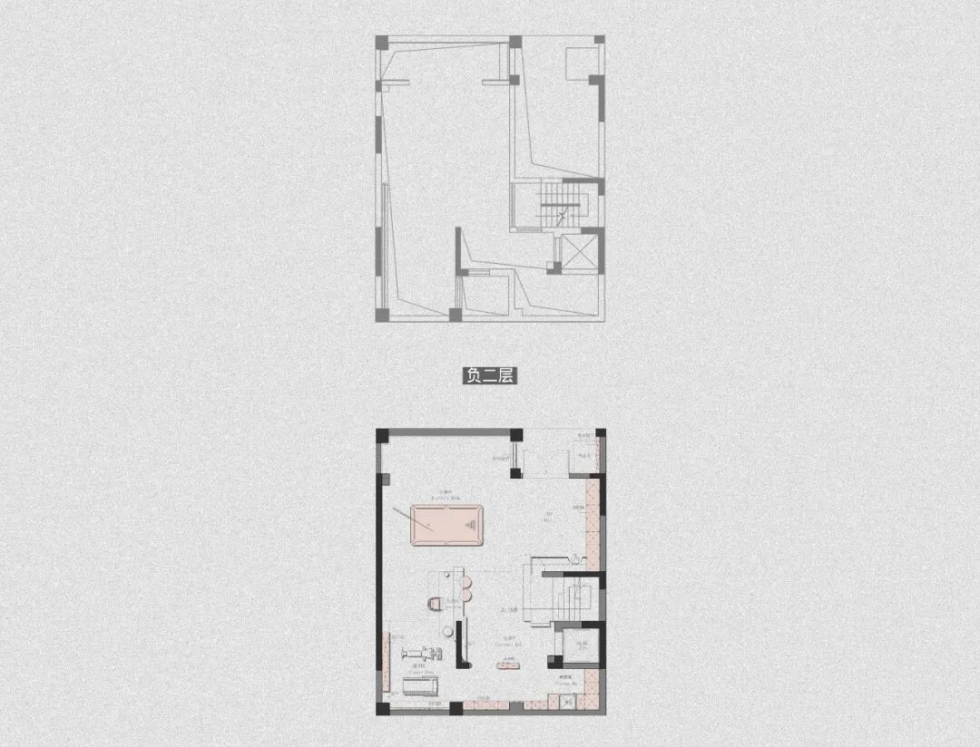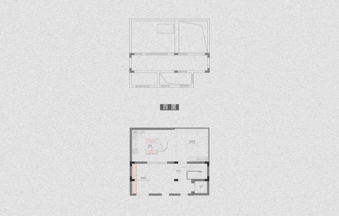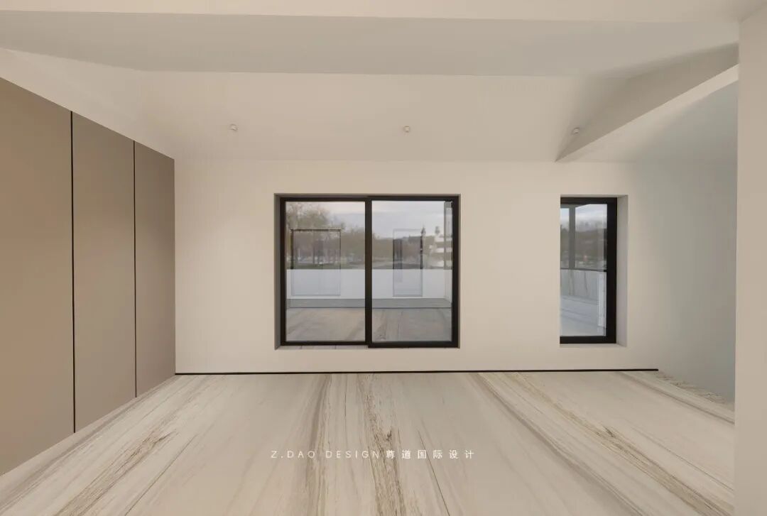 我们在相隔的挑空区域墙面,切开了一个圆洞,里面是负一层的卧室,让空间有了互动。