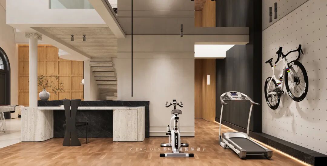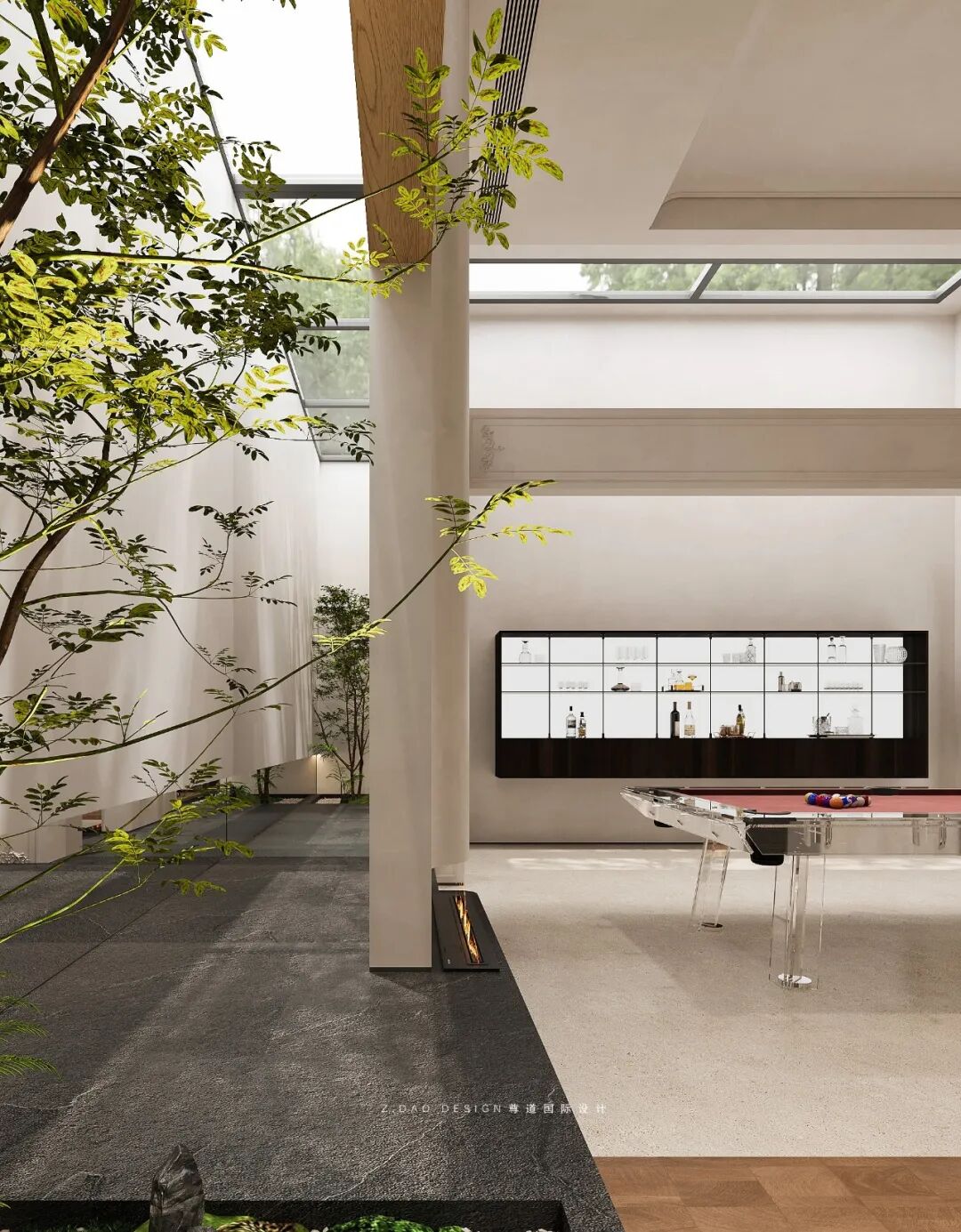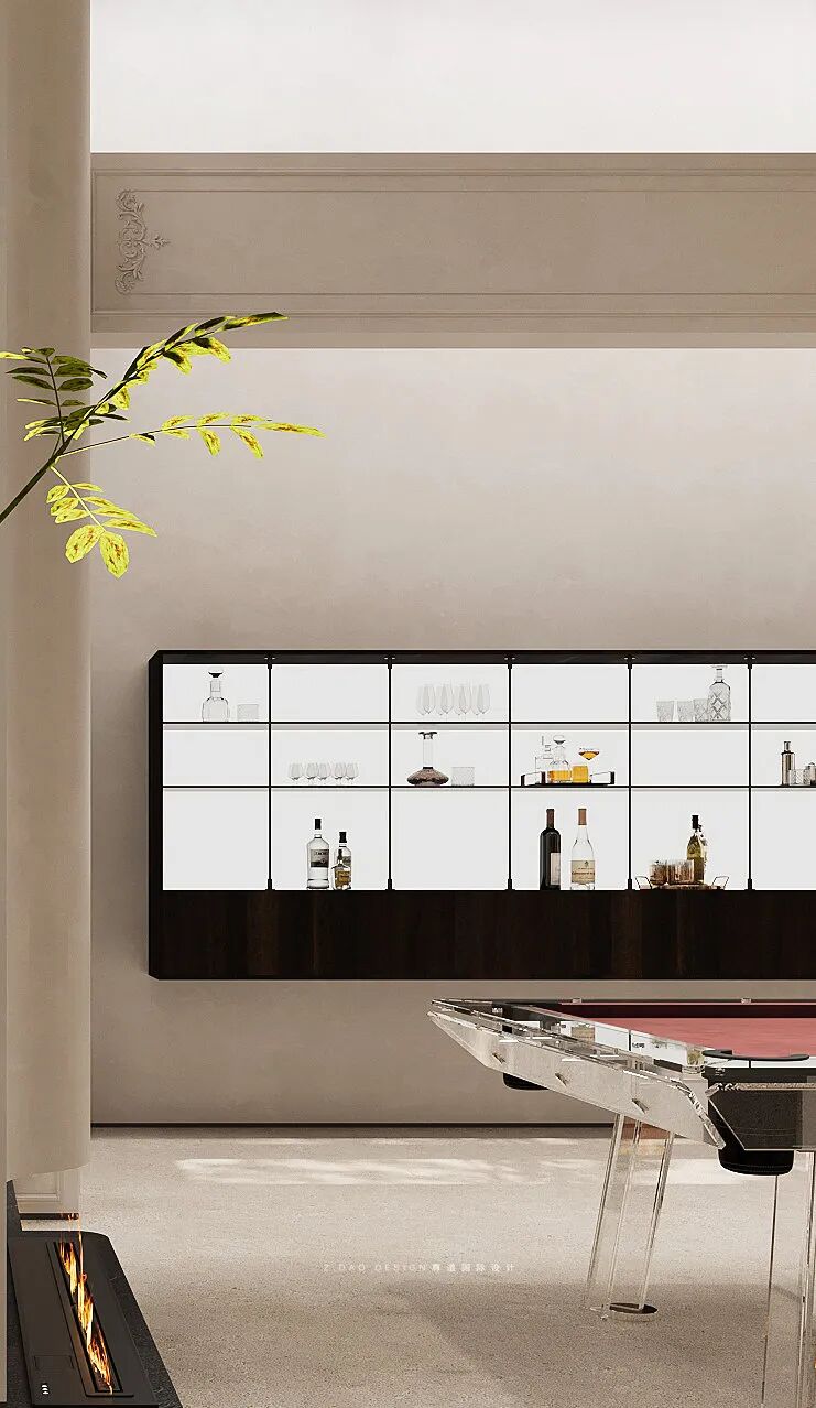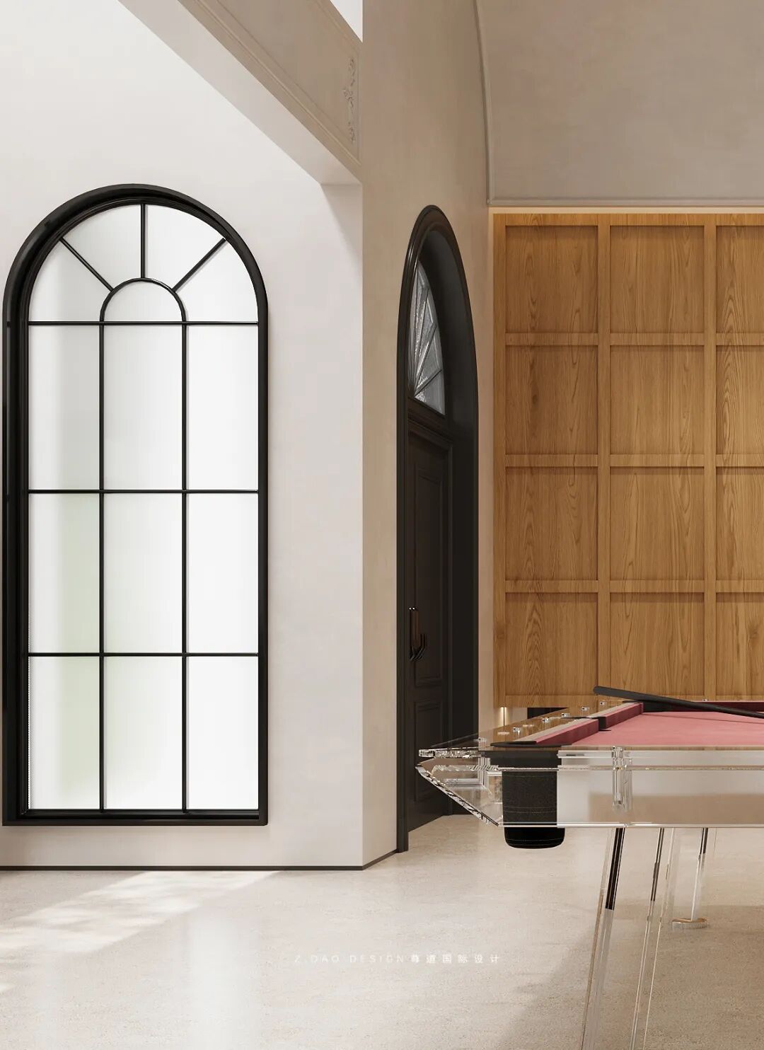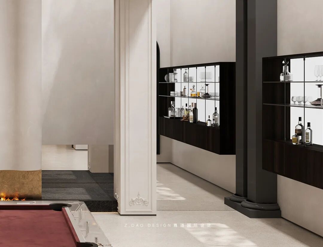 空间的功能根据业主的需要做个性化设计,挑空的台球区,是生活的延展,私人的乐园。在这里三五好友一起聊天一起打球,大宅生活所拥有的快乐触手可及。