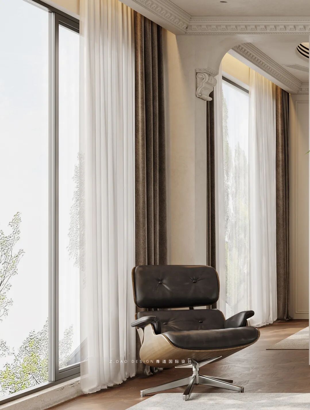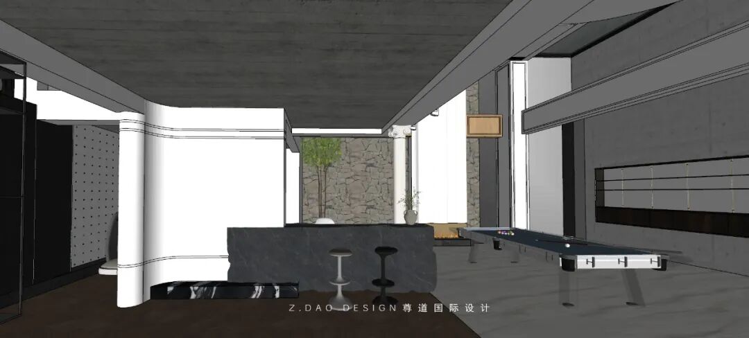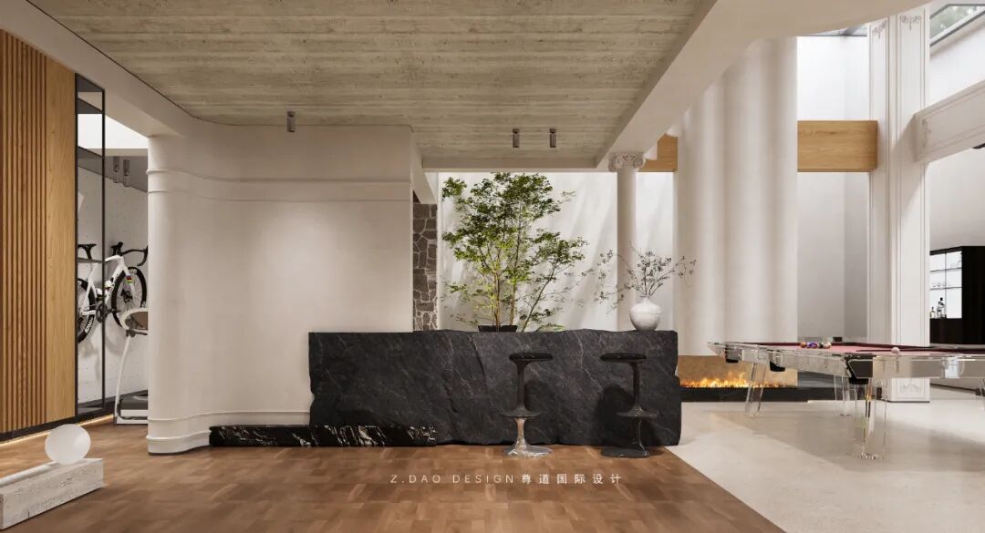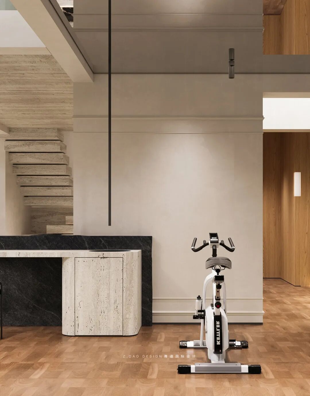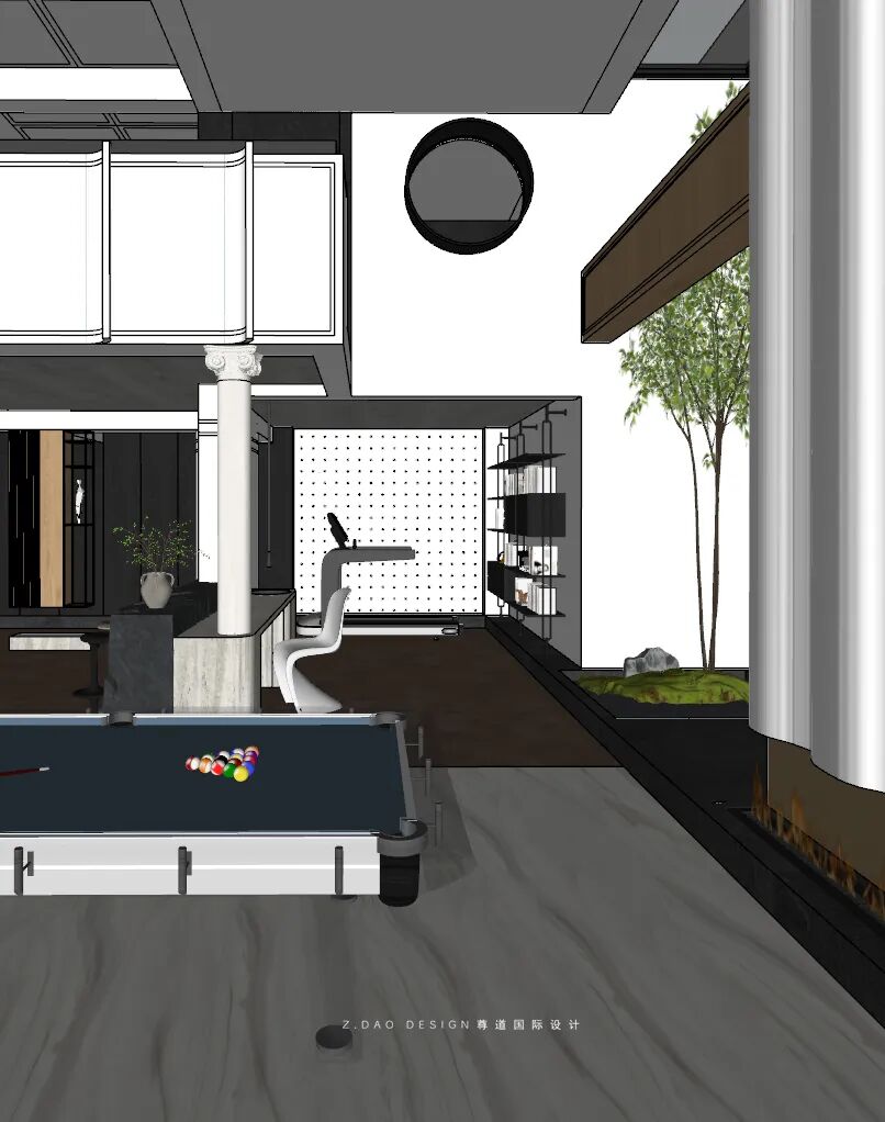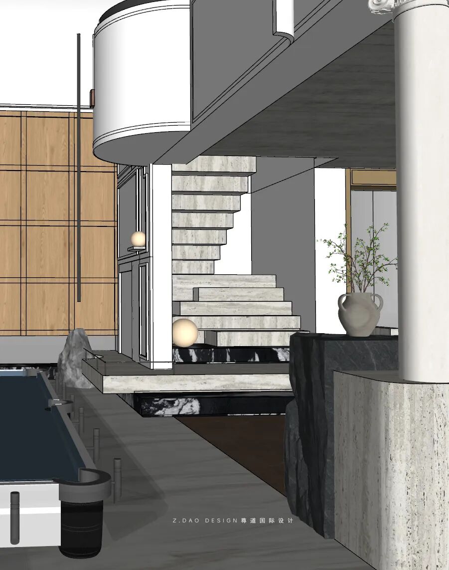 空间的功能根据业主的需要做个性化设计,挑空的台球区,是生活的延展,私人的乐园。在这里三五好友一起聊天一起打球,大宅生活所拥有的快乐触手可及。