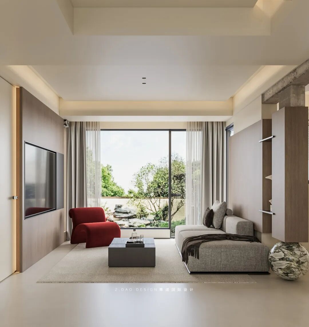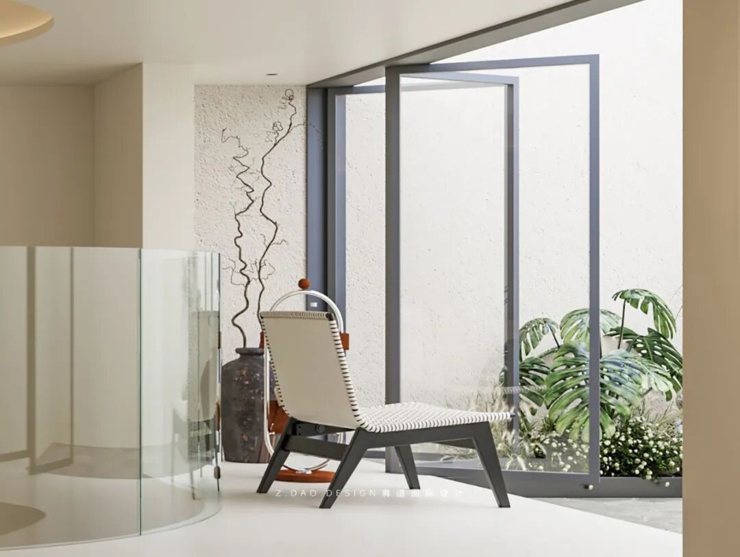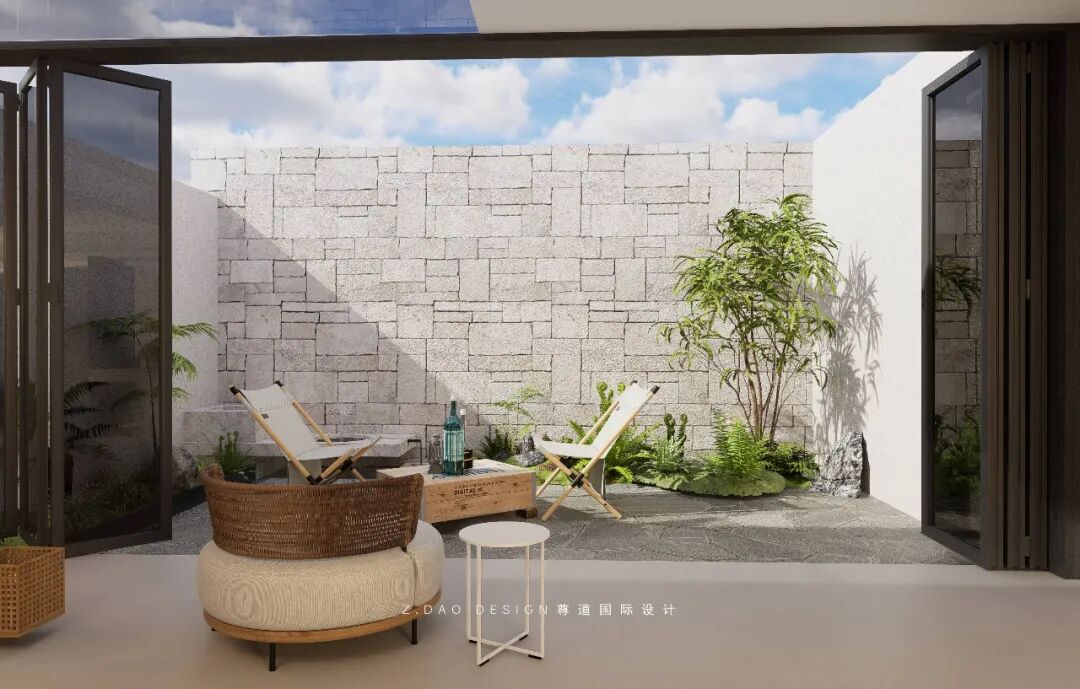 这里我们做了全景落地窗,推开窗就是专属小庭院,春赏青翠,夏闻蝉鸣,秋拾枯枝,冬寂雾霭,窗携四时景致以共叙自然。