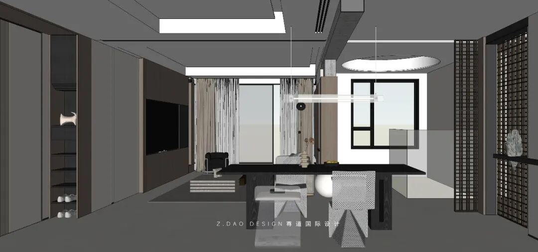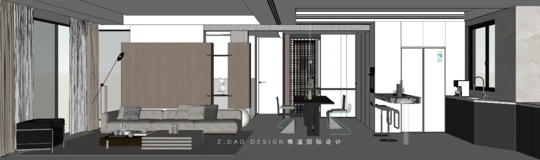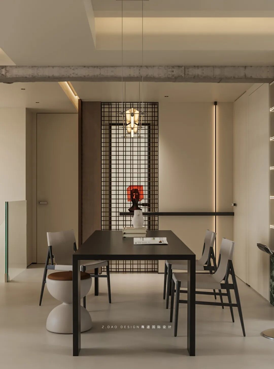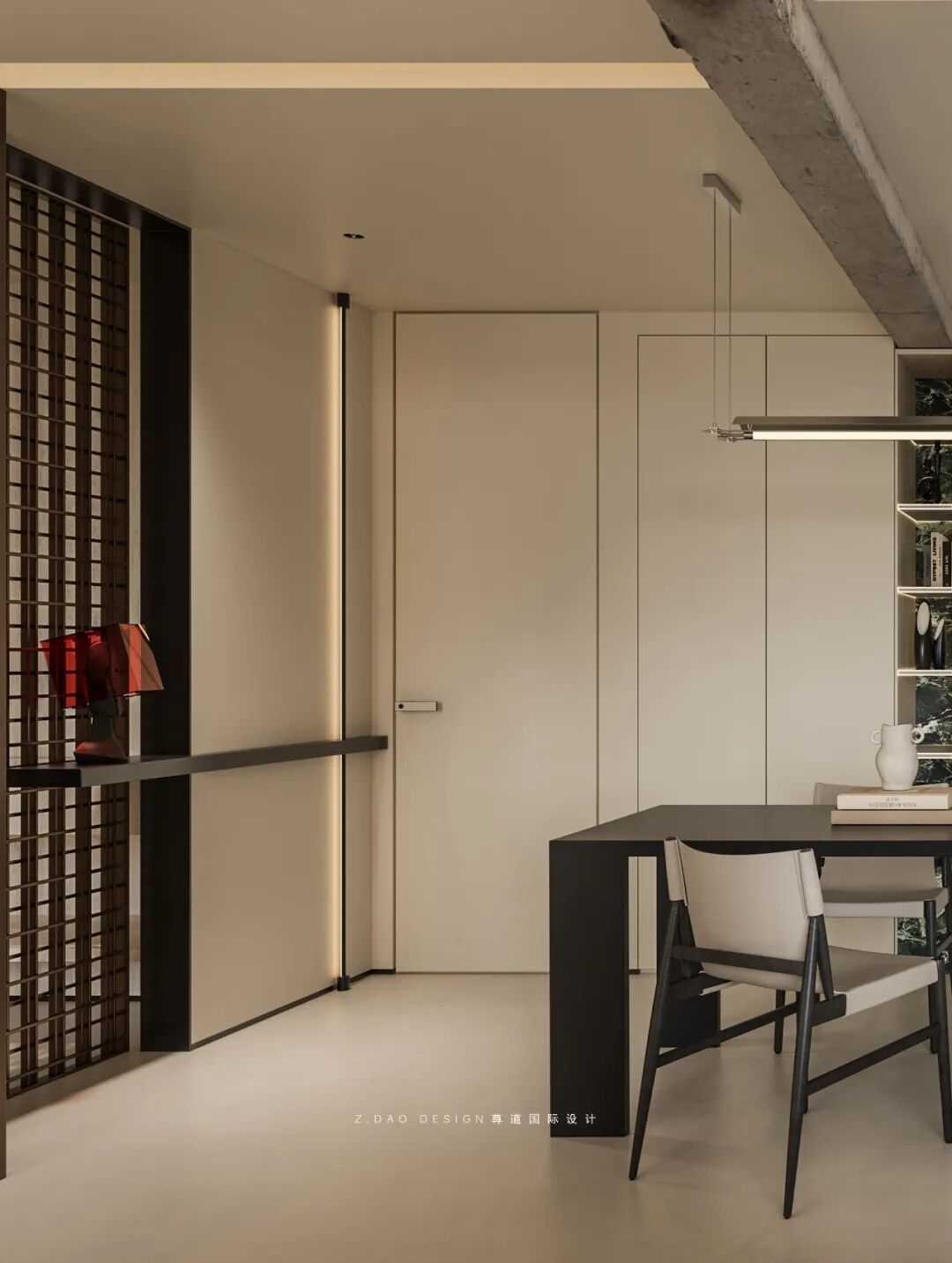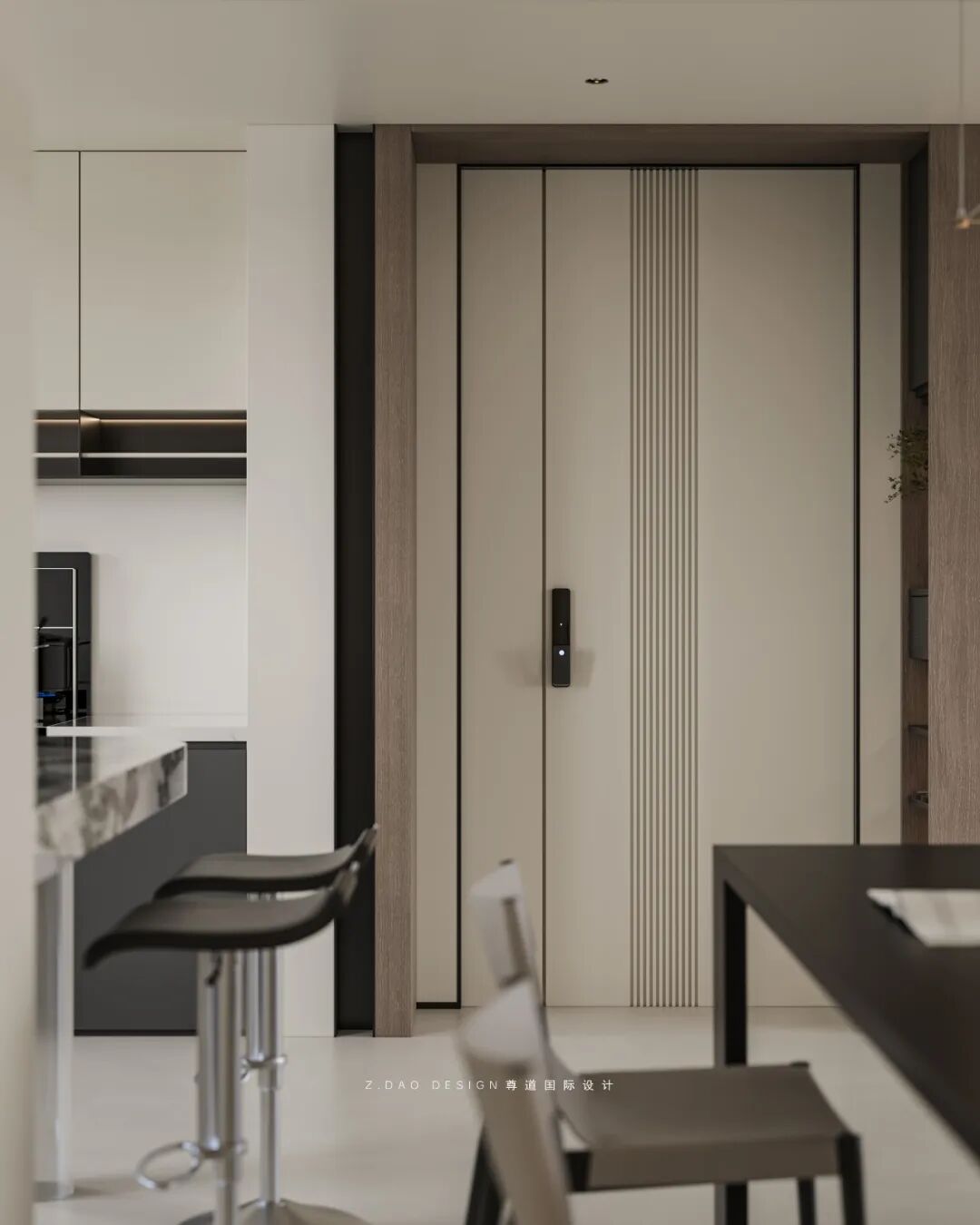 巧妙加入’屏风”来化解用餐时直对门和墙面的直白感,本案的在整个设计中,都重视空间的互动性,通过恰到好处的设计去改善生活、提升居住品质。