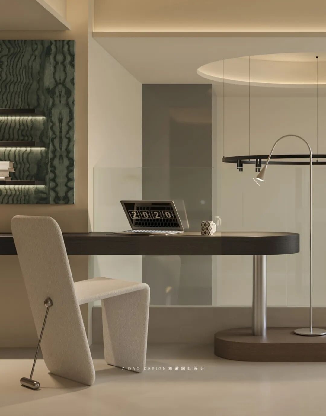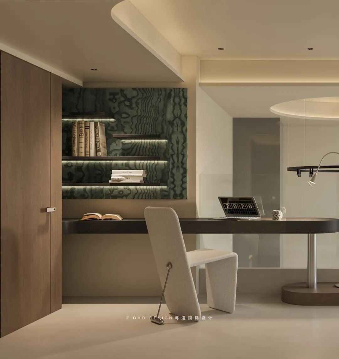 相比浓墨重彩地强调,书房这个空间更倾向于轻盈地表达。孩子学习使用或是居家办公,空间能随需求灵活转变,始终贴合主人不同的生活节奏。