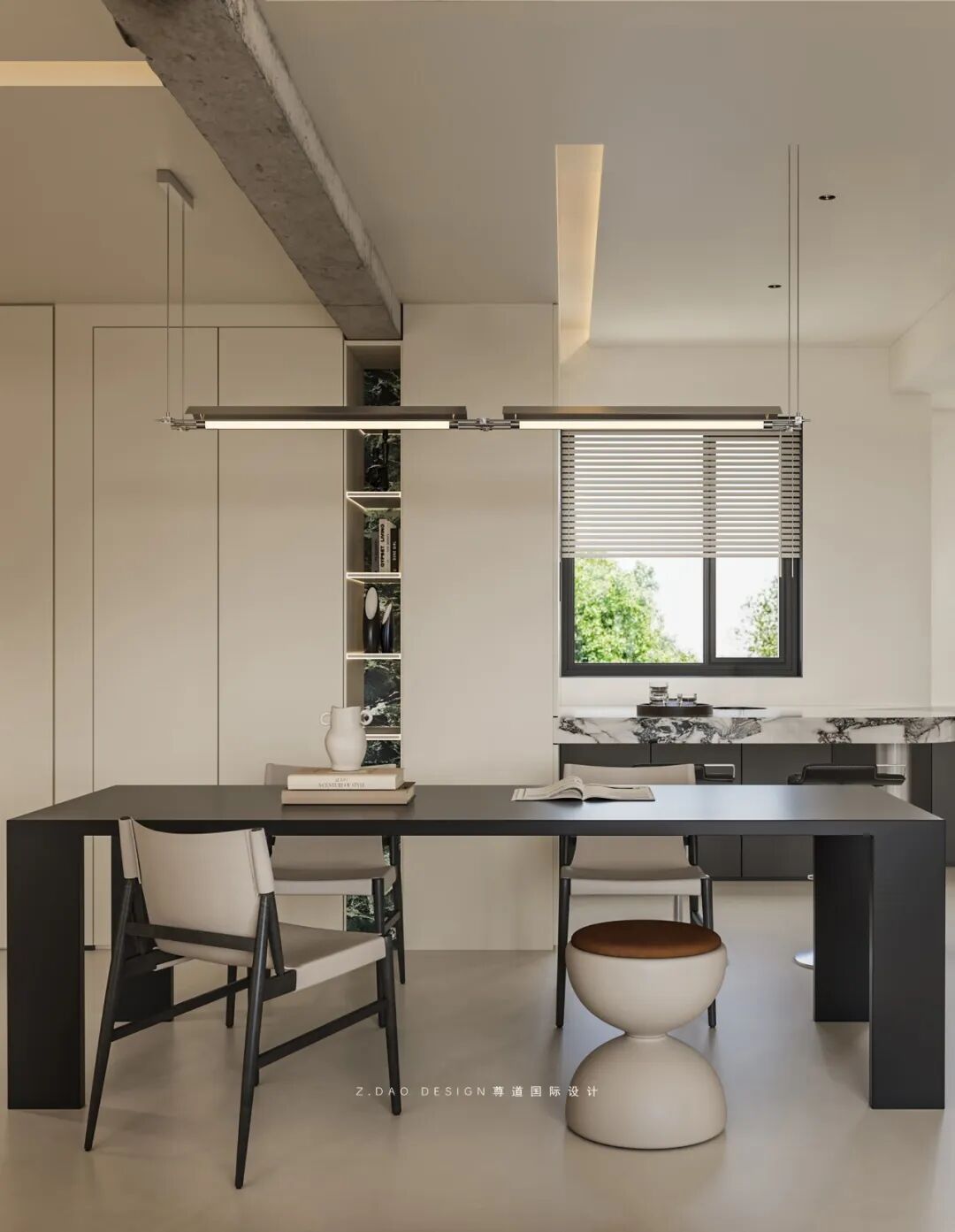 照顾自己的食欲和照顾自己的情绪是同一种能力。方形餐桌让每次摆桌,都像在整理心情。开放式的布局,打造一个干净而明亮的用餐空间。餐桌平衡结构比例,把控着适宜的尺度关系,向四面联动流畅动线,孩子可以在整个公区自由玩耍。