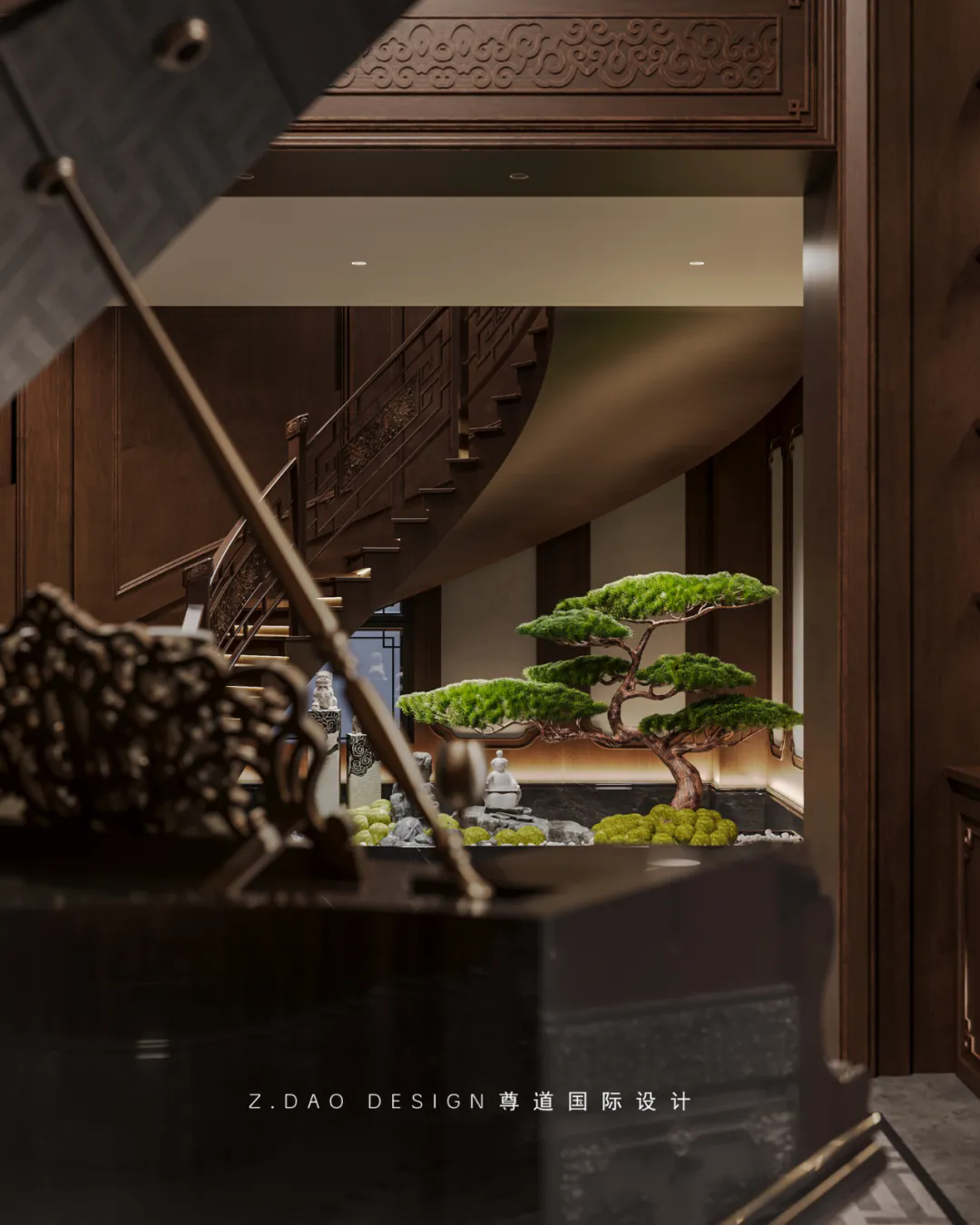 自然的原木加上富含寓意的雕花线条,既经典又高级,而且随着时间的沉淀,会越来越有韵味,尽显东方文化内核~
