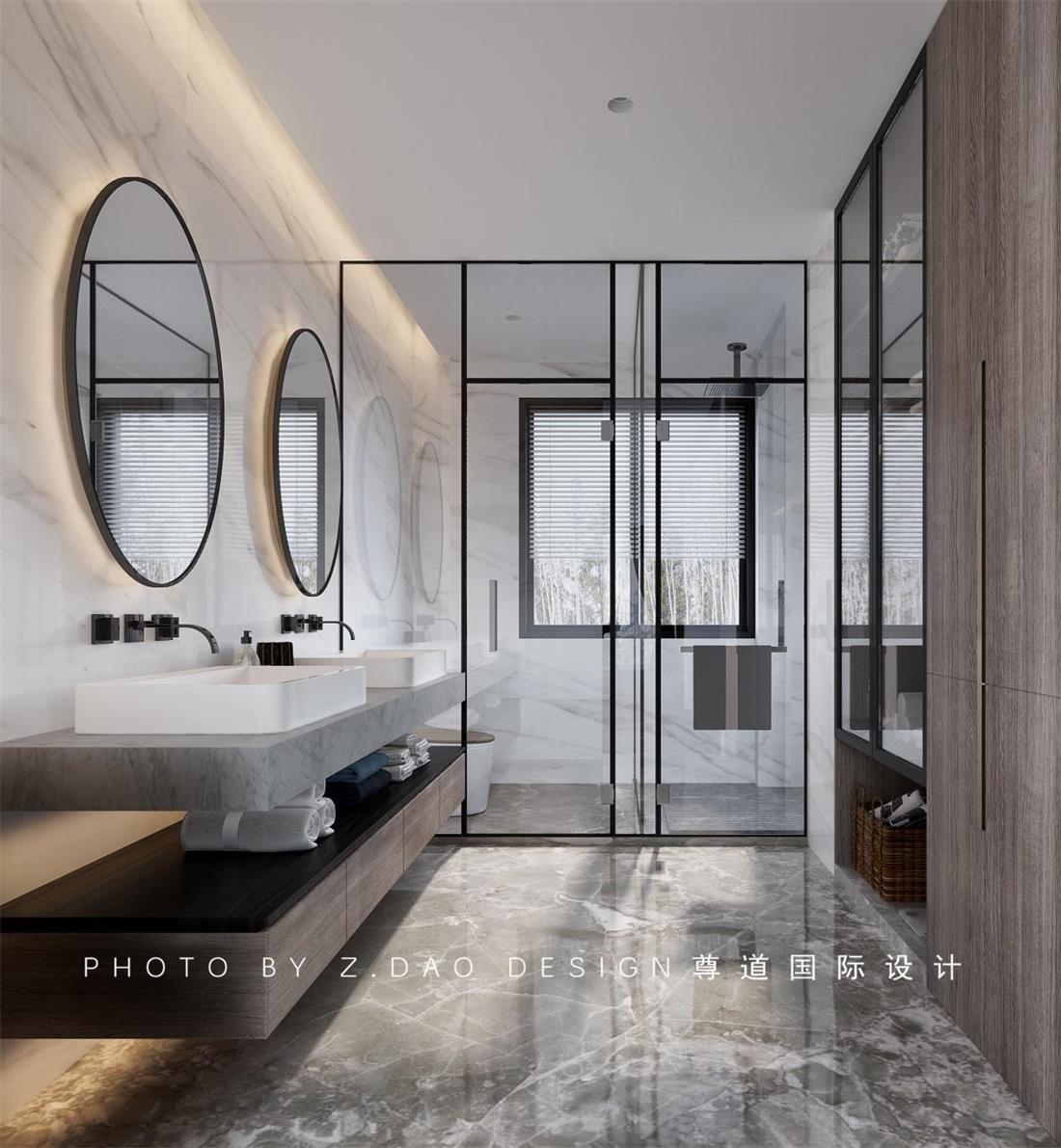 在保证实用性的同时,更加注重美感,空间的尺度,使用的便捷性,深浅搭配的卫生间也会有满满的高级感,储物柜的加持,是这个空间实用性的一个提高。