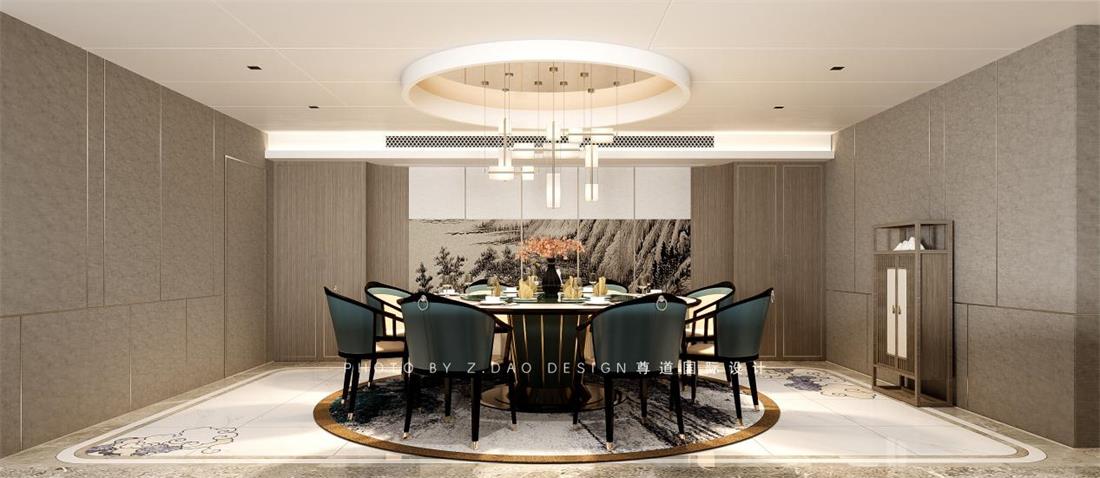 家宴厅是一个大家族在一起最欢乐的时光,古人云民以食为天,餐厅的重要性,可想而知,新中式的精髓呈现——“天圆地方”。不管是灯饰还是桌椅,都将“圆”这个元素融入其中,空间随着圆变化无穷,且含蓄内敛、高雅稳重,同时传承着自古以来的美好寓意。“天圆地方”所建构的家园既能承载合家平安,又能使生活蒸蒸日上。连贯家庭、文化以及生活的开场把城市文化传承娓娓道来。