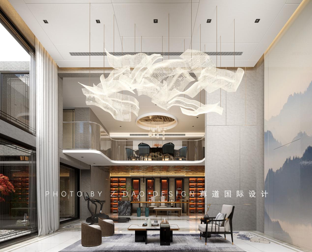 新中式是传统与现代的有机结合,是对传统的建筑文化的继承与发展,此案不是在以往的风格中置入代表新中式的装饰物件,而是将富有感情色彩的线条、创意、结构悄无声息的融合一体,最终会心一击达到新的场域力量。