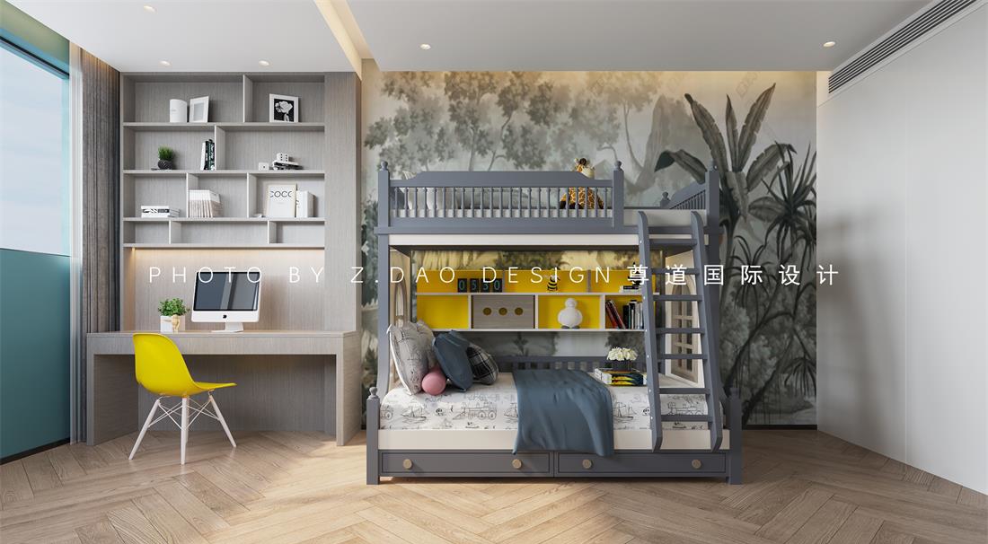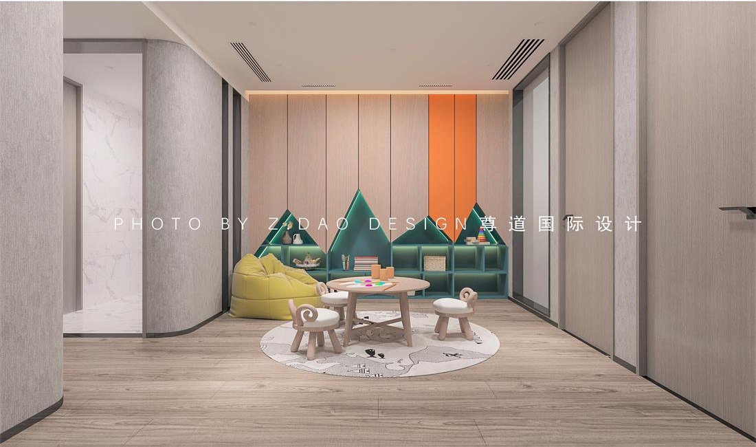 二层中厅作为宝宝的玩耍空间,有绘本区和玩具区,柜子的设计是烤漆设计。