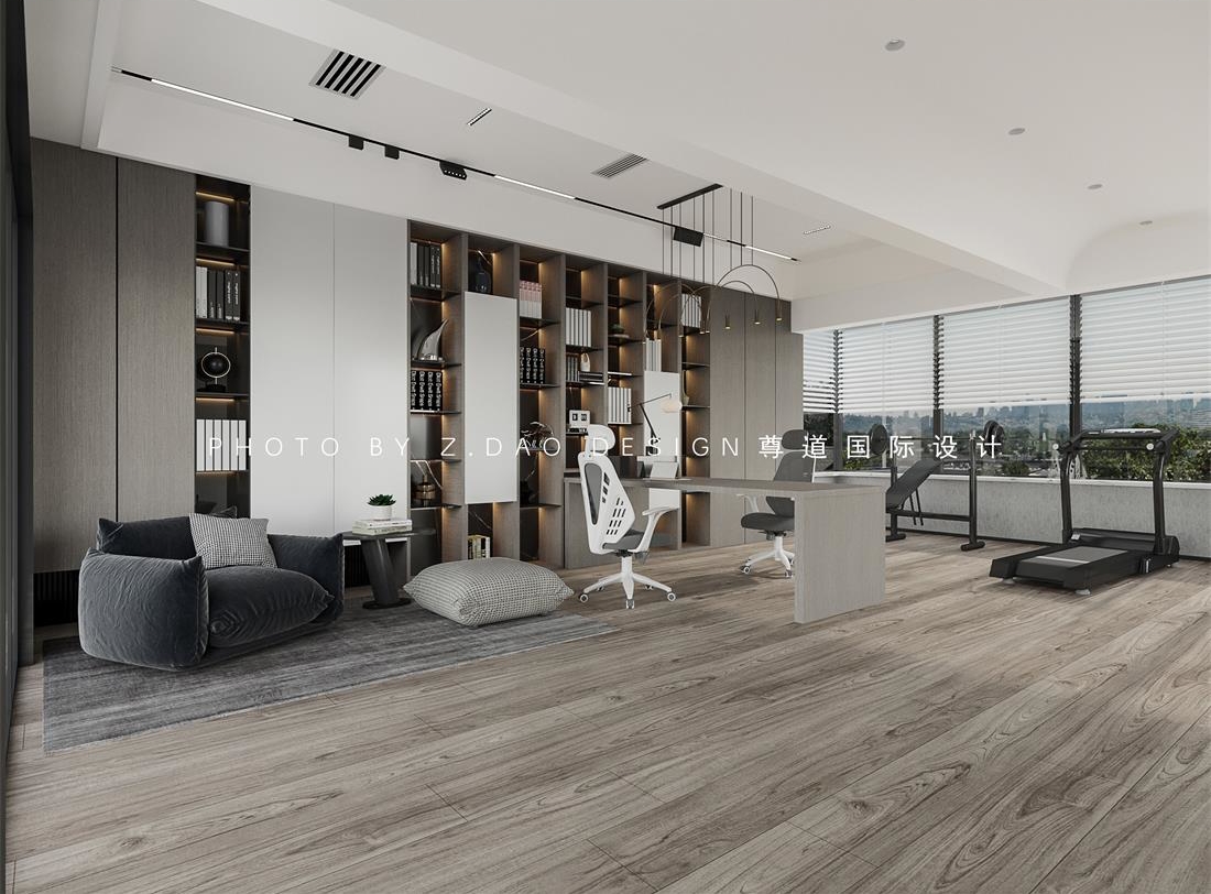 四层办公室作为敞开设计,兼具了休闲,学习,工作,与健身的作用。这个空间作为业主自己的活动空间。