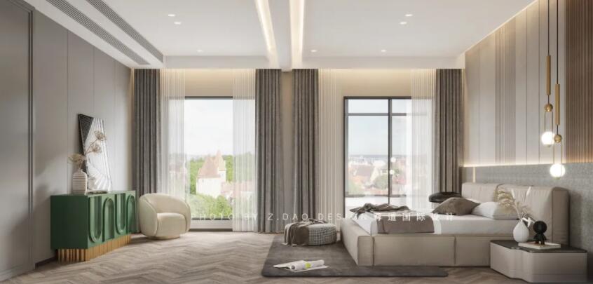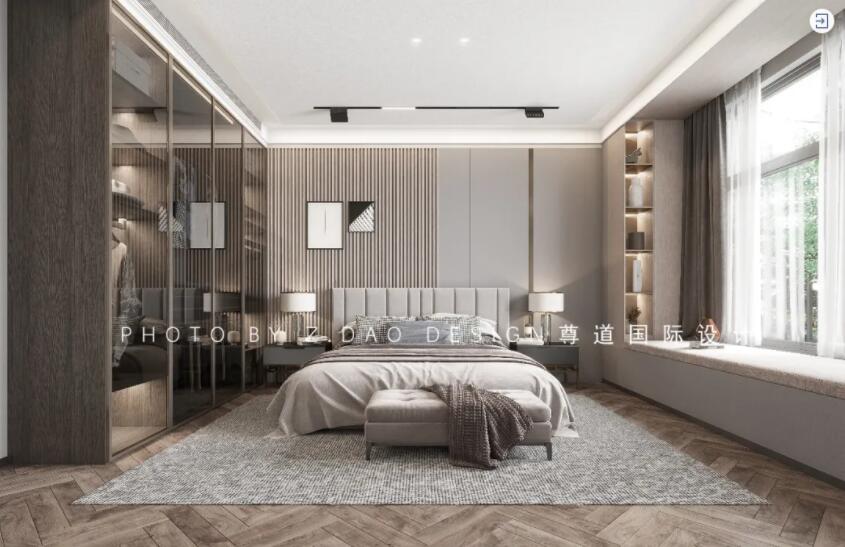随着大家对生活质量的重视,别墅卧室装修越来越多的使用套房设计,卧室功能布局除了睡眠、储藏、洗漱、还延伸到了学习、健身等方面。