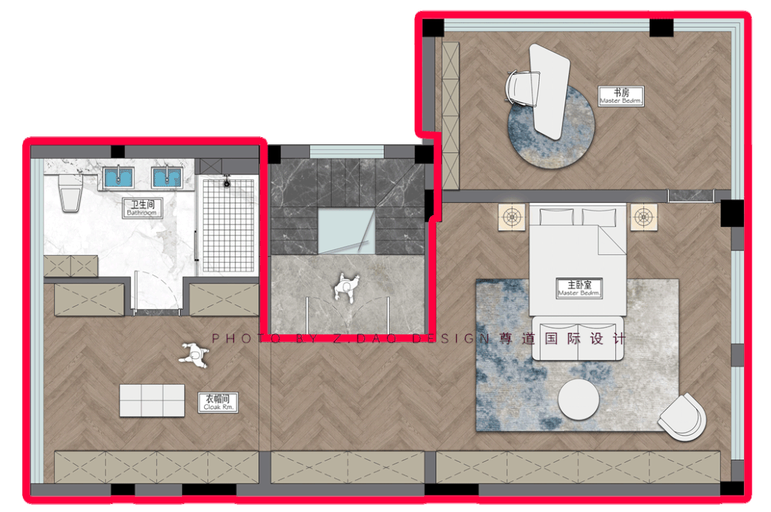 卧室套房功能区:睡眠区、储藏区、休闲区、办公区、洗漱区……