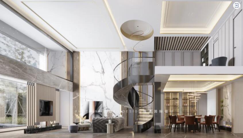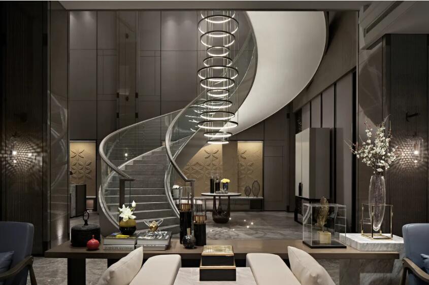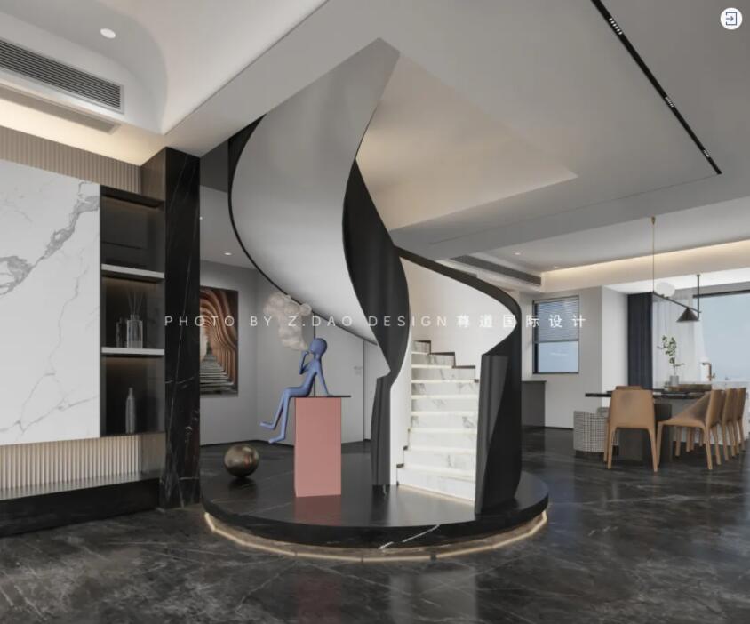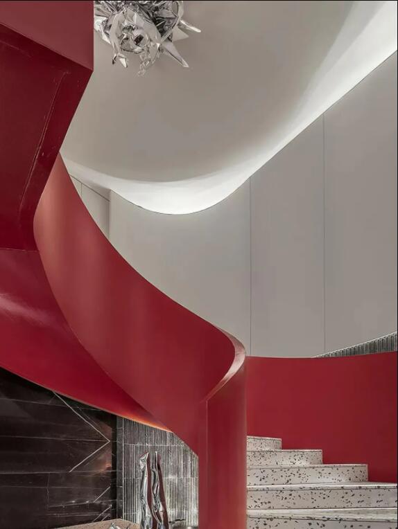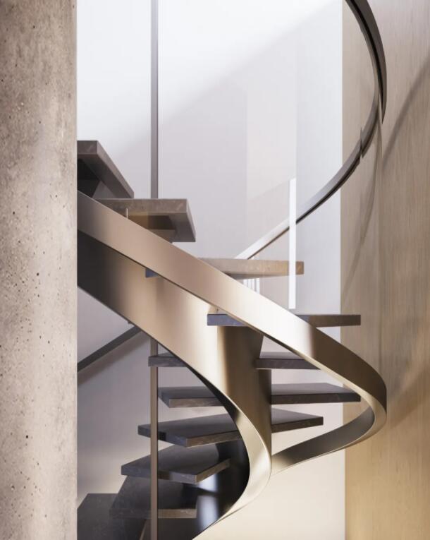 一个完美旋转楼梯的形成,并不是它所呈现的那么简单。从构图到最终的落地,需要设计、建模、打磨等各层环节的紧密配合。每一个细节体现出来的是设计师对空间的把握度与专业经验,最终从美学上将楼梯与空间融为一体,呈现出空间的节奏感。