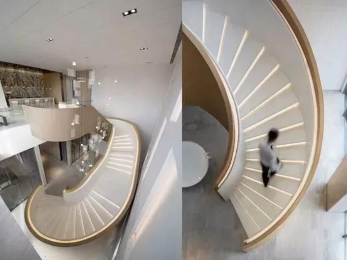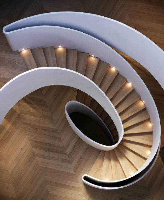 旋转楼梯基本材料会用到木质、混凝土、钢、大理石或者有机玻璃等等。
