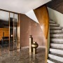 选择这种楼梯的客户,一般已在地层铺设大理石,为保持室内色彩和材料的统一性,用大理石继续铺设楼梯。但在楼梯设计扶手的选择上大多保留木制品,使冷冰冰的空间内,增加一点暖色材料。