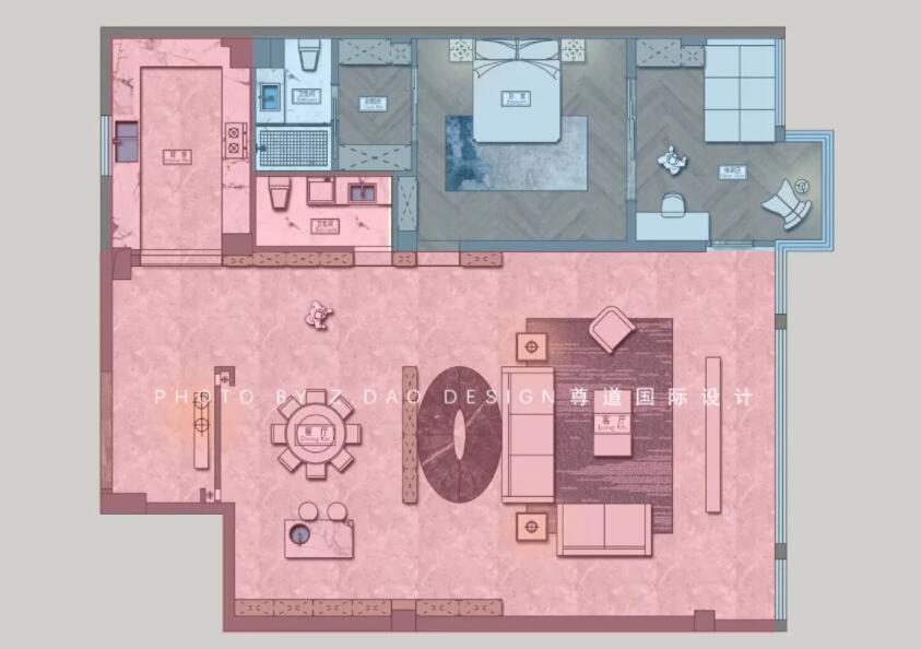 以主人一天的居家活动来讲,经常走动经过的地方叫动区,比如白天活动的区域,包括客厅、餐厅、厨房、卫生间、阳台等;静区主要指需要安静氛围的活动区域,基本上就是卧室、书房、衣帽间等区域。