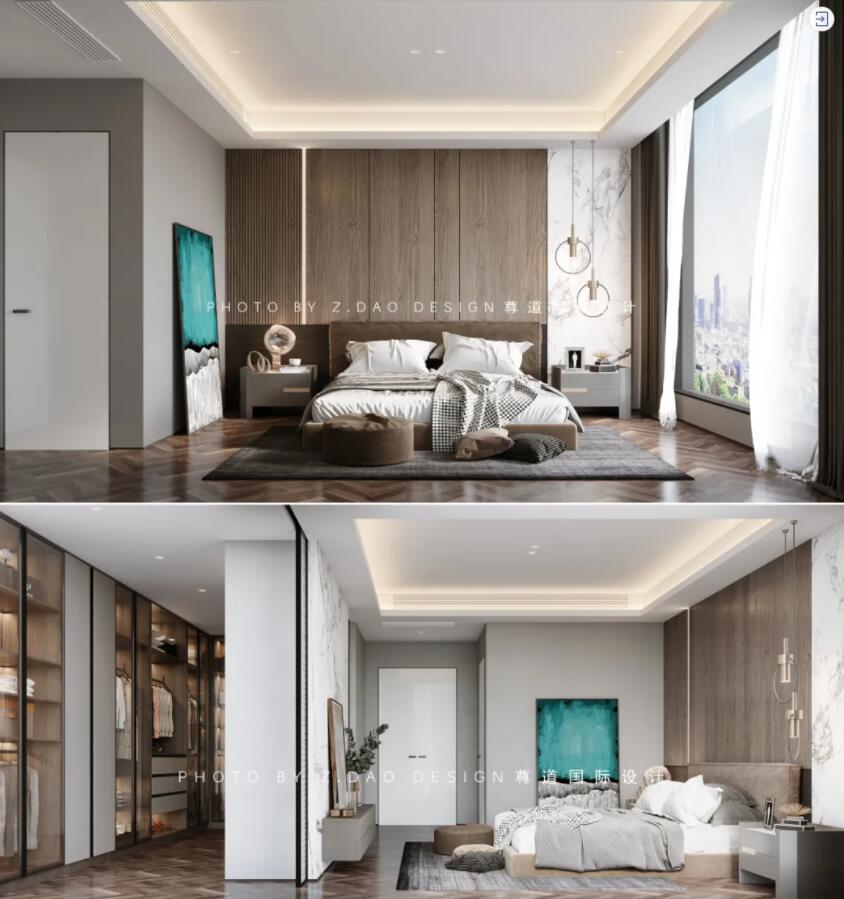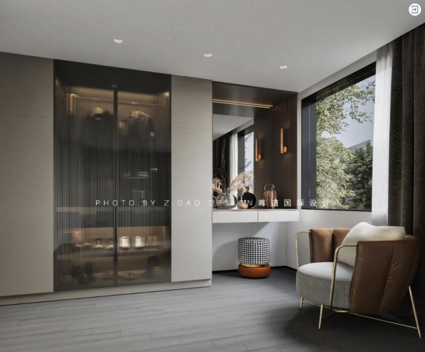 比如,女主人日常卧室起居包括起床、穿衣、洗漱、化妆等,这就要求尽量缩短梳妆台、衣柜、卫生间之间的距离,选择主卧套内衣帽间、主卫,或者定制衣柜+梳妆台的收纳柜,也是缩短起居动线的方式。