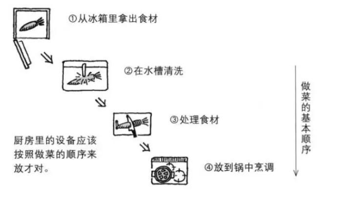 所以厨房动线应该遵循烹饪流程设置,整个做饭的过程才会变得流畅。