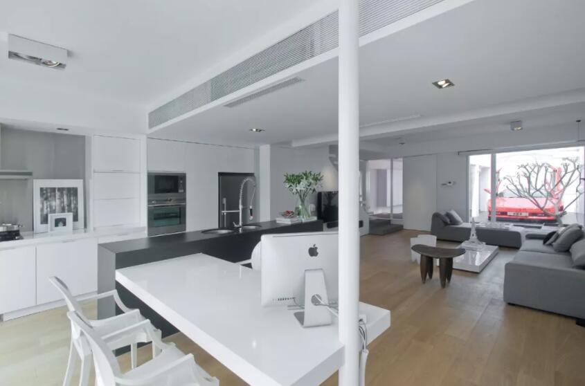 如果厨房跟餐厅面积都不理想,那么餐厅与厨房置于同一个空间是最好的选择了,转身就是餐桌,传菜动线几乎可忽略不计,并且,还可以大大提高空间利用率。