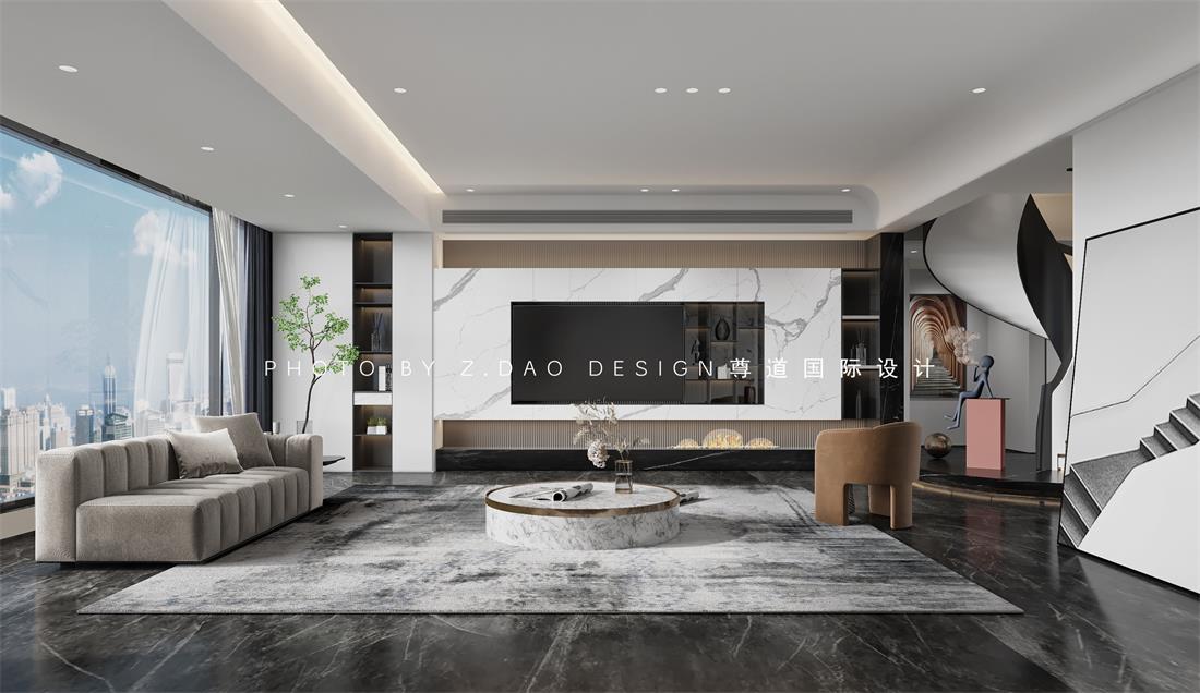 原先的楼梯围墙拆了之后,光线得到填充,楼梯的造型改成了弧形,一个行走的楼梯成了入户的一个艺术感的体现,这是一个最美最实用的玄关,楼梯下方特意设计了一个圆形的t台设计,这也是抓住业主喜爱的一个设计特点所在,也是较平常楼梯之外的一个特别之处,楼梯的整改让空间重新焕发,楼梯圆形t台,就像一个舒展的舞台,让弧形的楼梯在舞台上翩翩起舞,抬高的t台,也是风水上讲究的步步高升之意。
