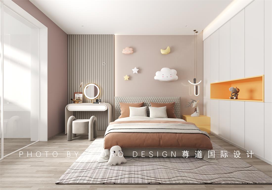 推开隐形门,踏入女儿的专属空间,女儿房区别与其他空间,整体色调比较明亮,脏粉色的艺术漆搭配米白色的软包,简单却不失女生的纯真,反光灯带起到了很好的烘托作用。阳台区放置了一个懒人沙发,一杯茶,一本书,沐浴着阳光,舒享独属于自己的曼妙时光。