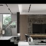 客厅做为无主灯设计,射灯、轨道灯、重新了规划客厅照明。电视背景墙采用色块的方式进行设计,用最简单的材料做出最简单的造型,和整体空间融为一体。大理石电视柜、板材茶几,凸显质感。一张柔软的高级灰地毯,好像是故意来打破空间的冷静,既保持了适宜的高冷气质,又不失温馨。