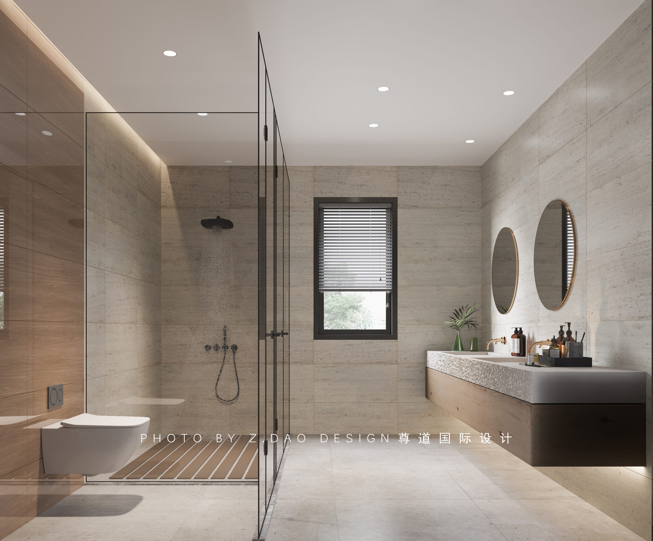 卫生间三分离加上双台盆,最大程度的提高使用舒适感,马桶区和淋浴区进行色彩分割,卫生间也可以不普通。