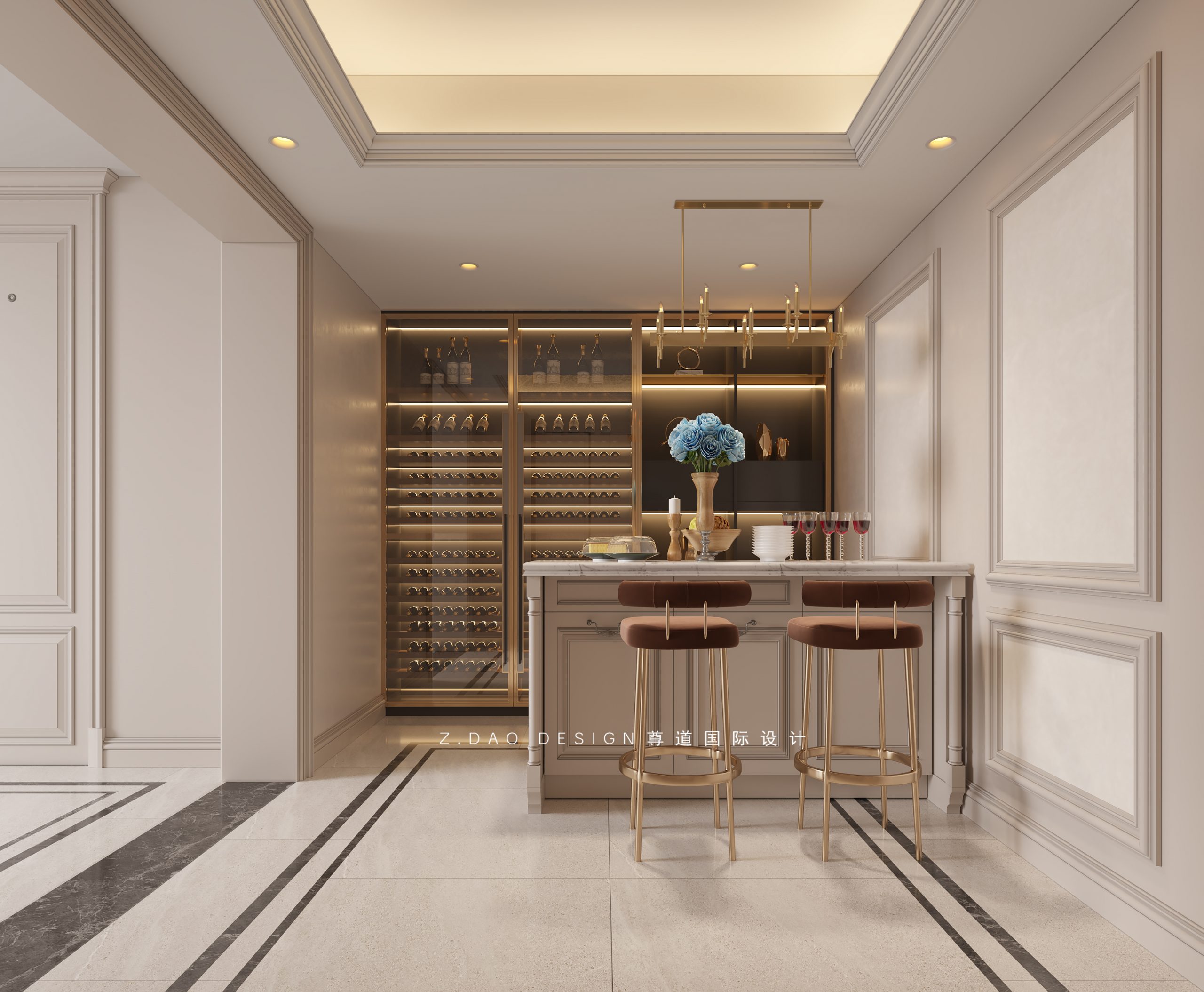 ▲效果图吧台由一组简单的金属酒柜,一张实木吧台,两把极具设计感的吧椅,一盏金属吊灯构成。闲暇时,坐在吧椅上饮一杯烈酒,看一本《时间简史》。遨游在时空里,也不失为一种生活乐趣。舒缓的钢琴曲在空气中流淌,品着杯中美酒,纵使世界再大,只取眼前一瓢足以。此情此景,安于今朝。