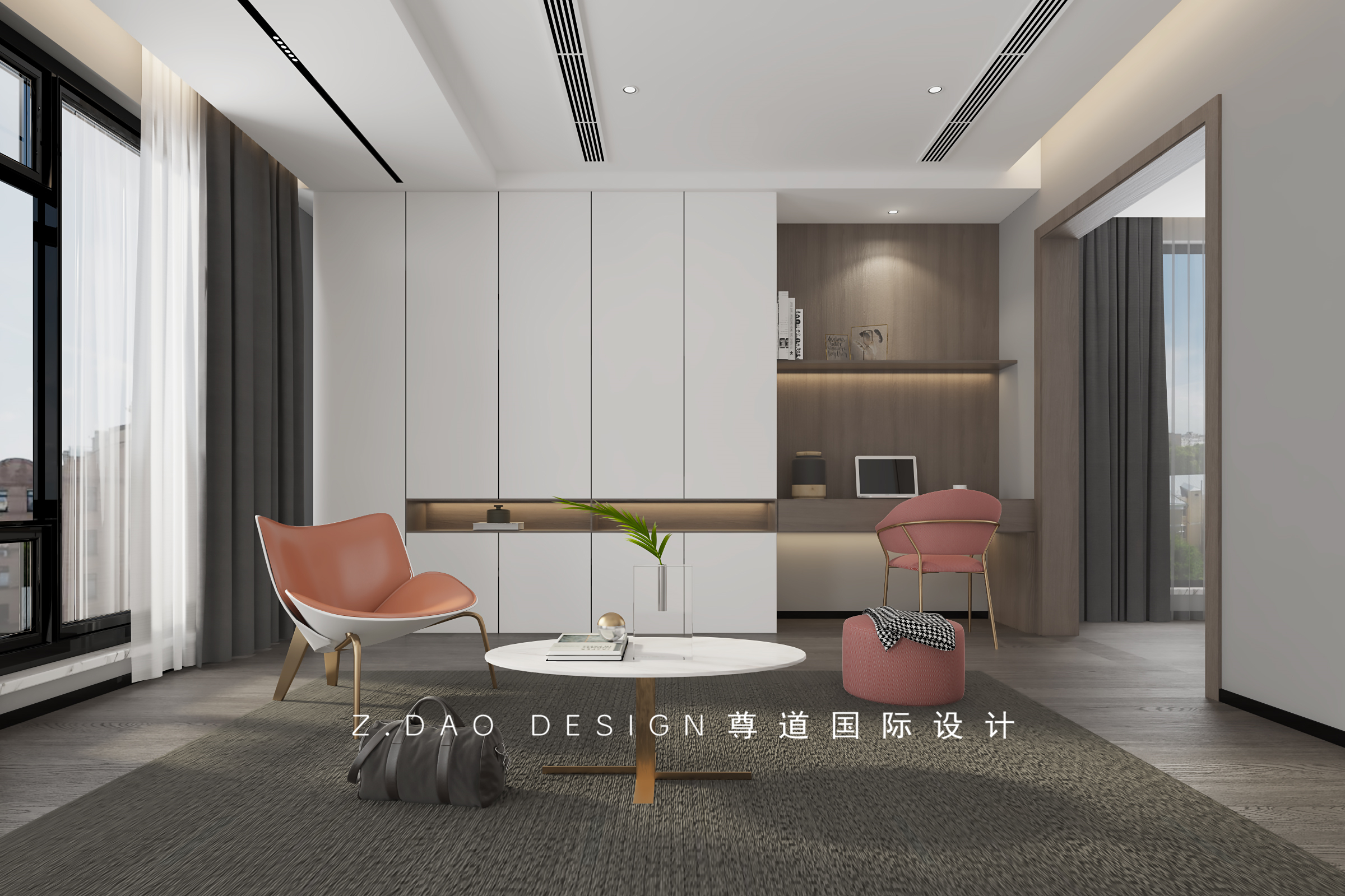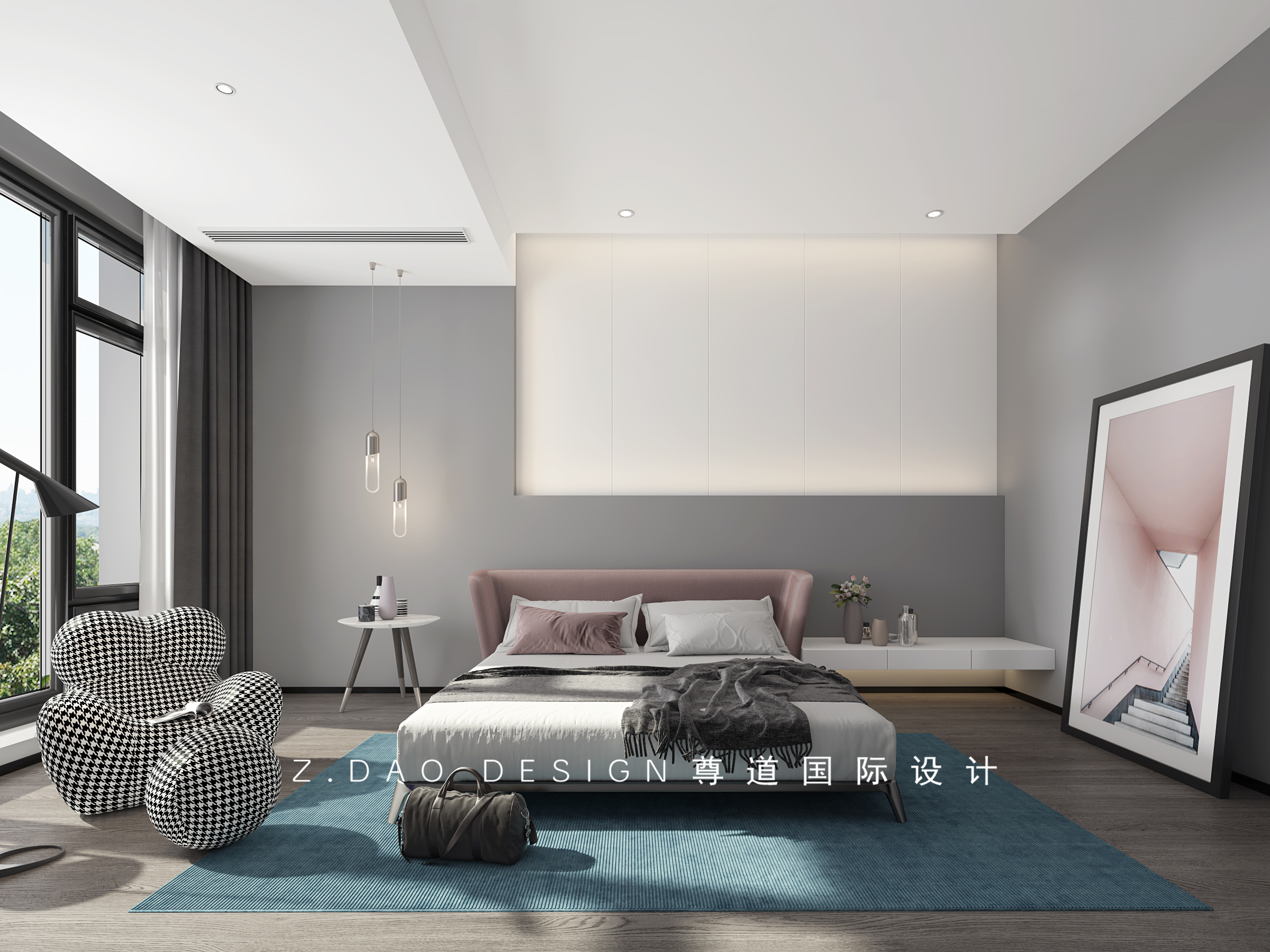 以白色与灰色的主旋律,营造干练而不失温馨的空间。光影错落,悬空的床头柜,使空间更是增加了空间的层次感。扇窗边是一处简单的休闲空间,闲暇之时,可以享受温暖的阳光。