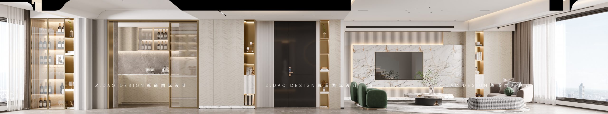 ▲效果图从入户玄关开始,开放式的玄关保证了从入户进来感官上的开阔性。玄关柜利用了转角和悬空的设计,悬空底下设有地台加了灯管烘托气氛。转角柜的空格设计使用了不锈钢金属墙面也加了金属点缀,进门就体现了轻奢的感觉。