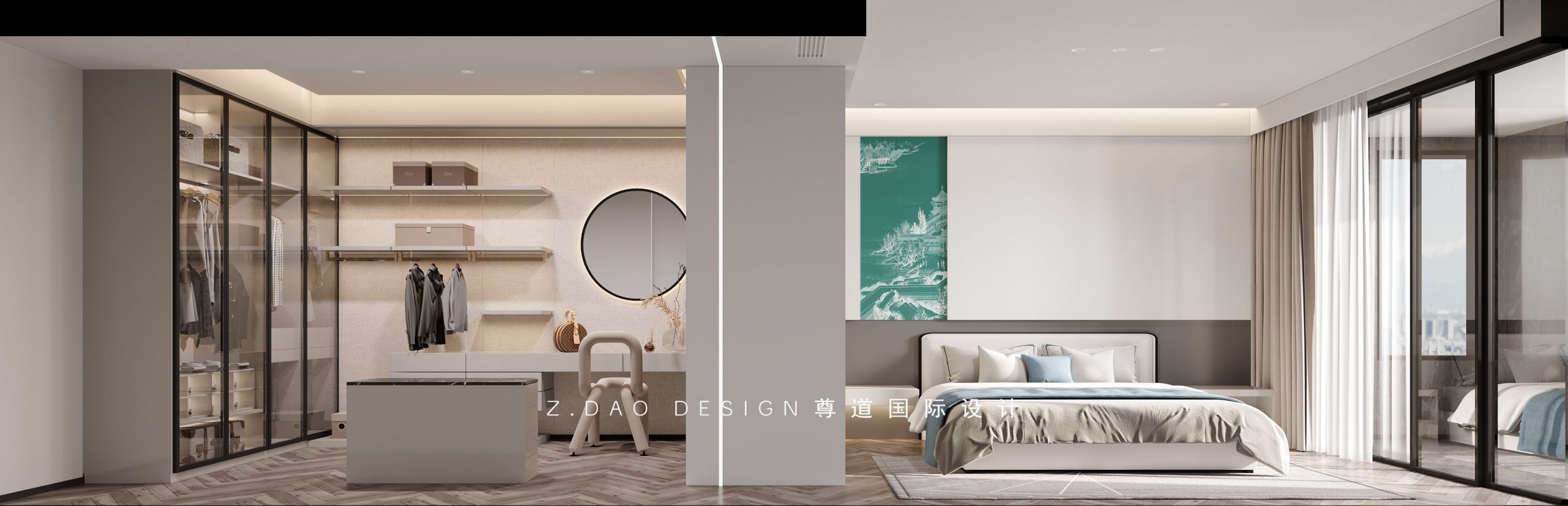 二楼整体空间套房设计,满足洗漱、收纳、睡眠等功能。